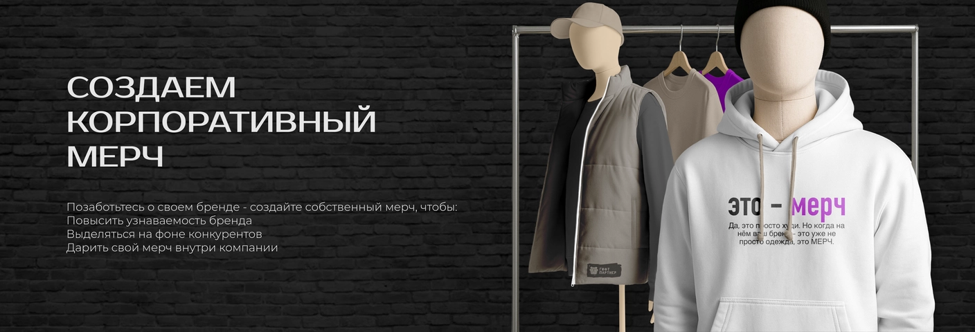 Наша студия производит корпоративный мерч с логотипом на заказ для бизнеса, компаний, сотрудников и мероприятий.