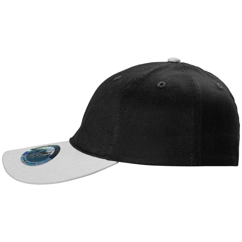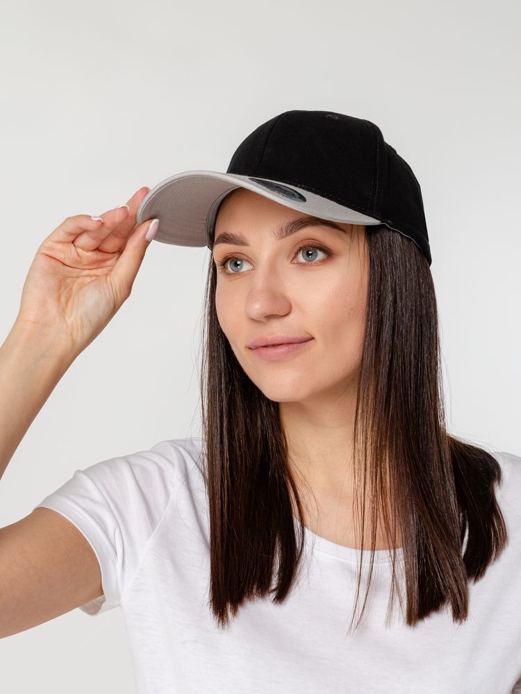 Бейсболка с цветным козырькомШесть клиньев, со швом на лбуОбшивные люверсыВшивная эластичная резинка вместо застежки