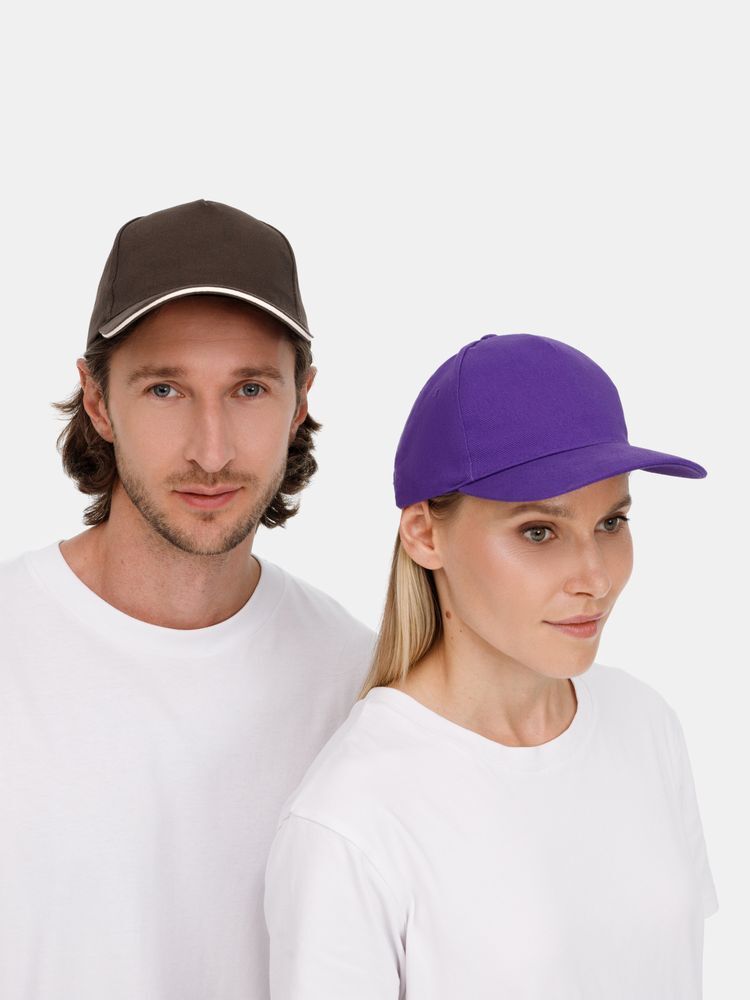 Модель бейсболки с 5-ю клиньями без лобового шва из плотного чесаного хлопка.Обшивные люверсыМеталлическая застежкаКозырек–сэндвичСочетается по цвету с одеждой Sols