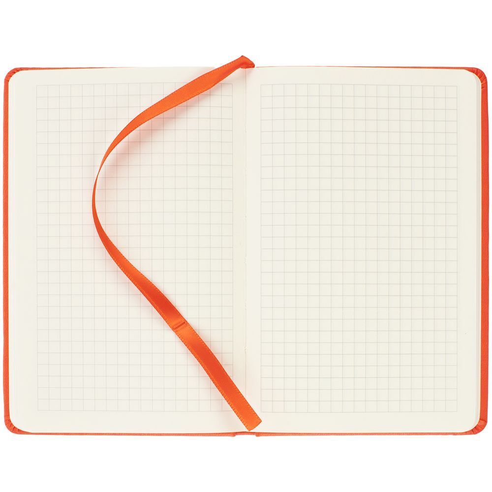 Изделие упаковано в термоусадочную пленку.Твердая обложка из материала Latte, оранжевый, ляссе в цвет обложки.Блок в клетку.Кол-во страниц — 144;Бумага — тонированная, плотность 70 г/м².