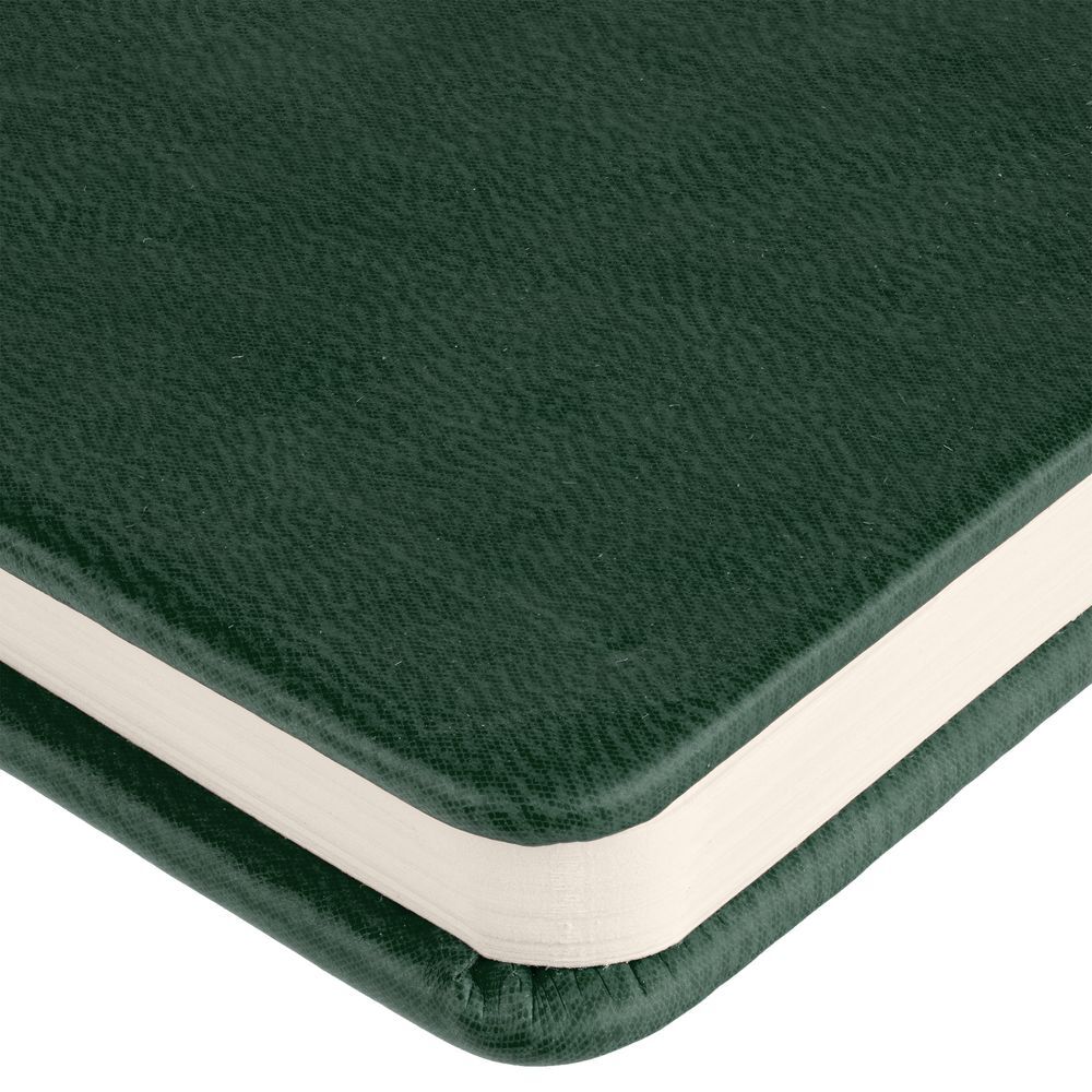 Изделие упаковано в термоусадочную пленку.Твердая обложки из материала Latte, зеленый, ляссе зеленого цвета.Блок в клетку.Кол-во страниц — 144;Бумага — тонированная, плотность 70 г/м².
