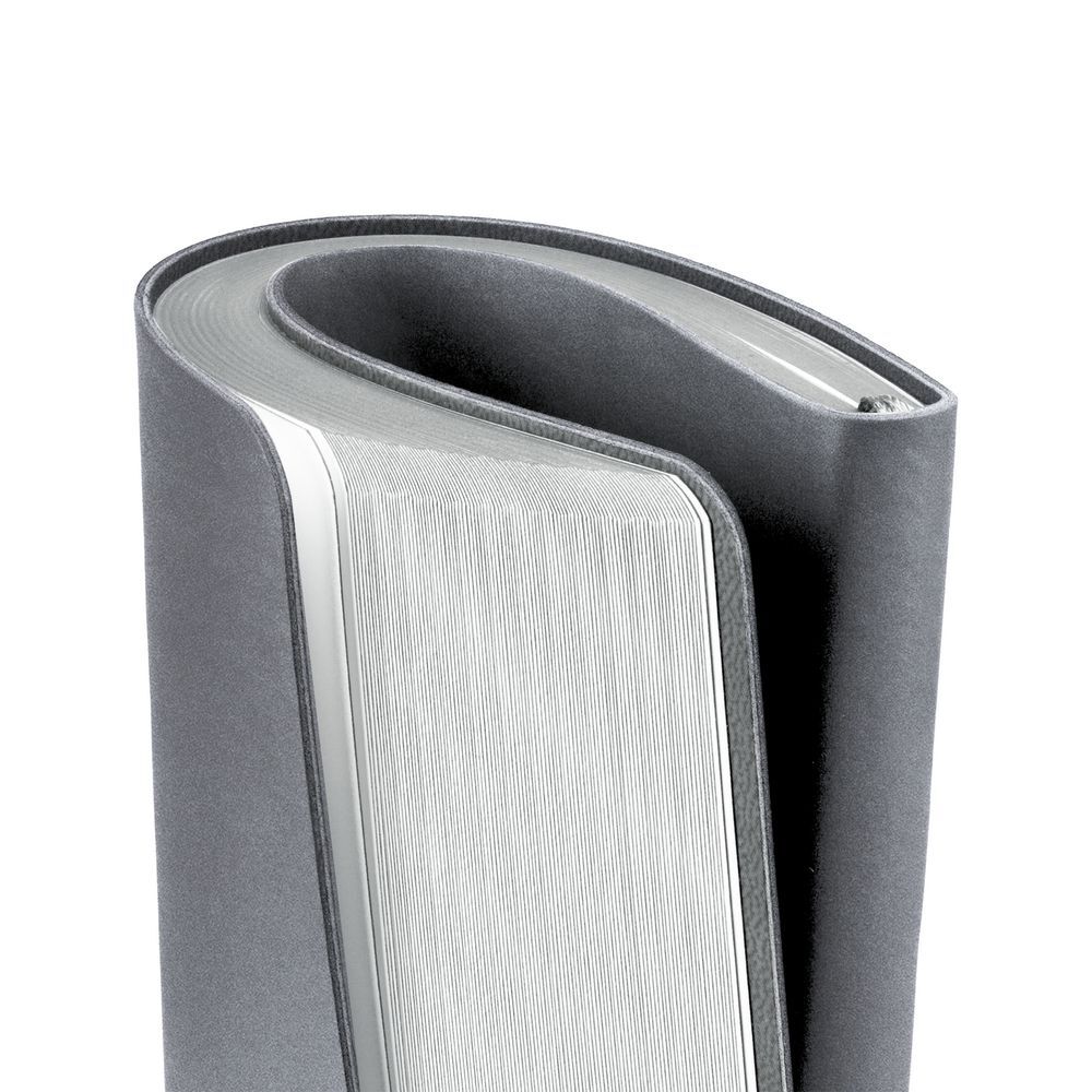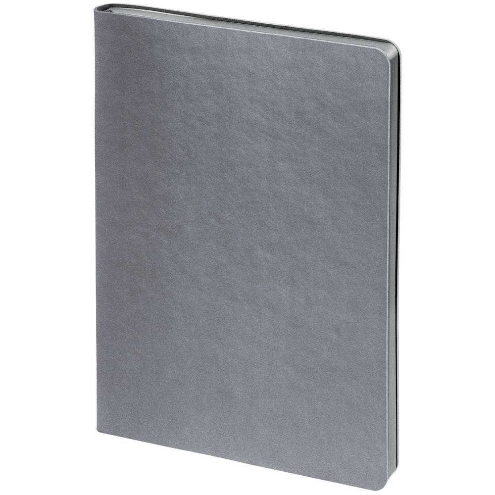 Блокнот с гибкой обложкой, выполнен из материала Soft Touch Pearl, серый CC и Latte, серый СС (внутренний материал).Блок без печати:Кол-во страниц — 192;Бумага — белая, плотность 70 г/м²;Обрез блока — серый.