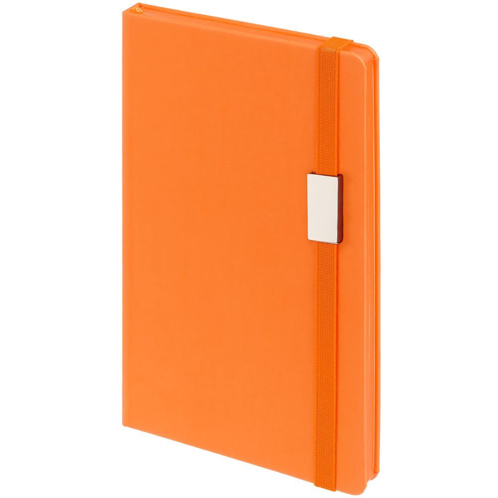 Блокнот в твердой обложке, выполнен из материала Soft Touch, оранжевый ОО, дополнен резинкой и ляссе в цвет обложки.Блок 297 в линейку:Кол-во страниц — 192;Бумага — тонированная, плотность 70 г/м²;Обрез — оранжевый;Форзац и нахзац — тонированные.