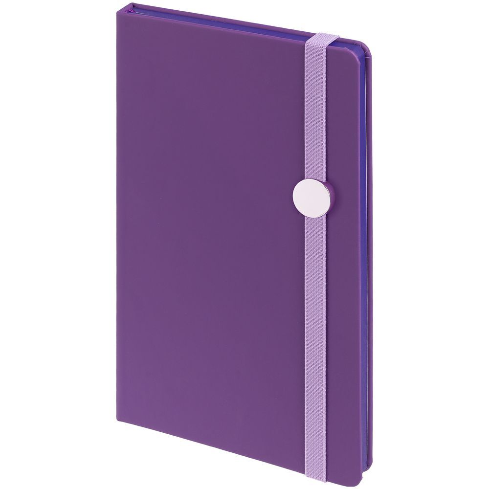 Блокнот в твердой обложке, выполнен из материала Soft Touch, фиолетовый UU, дополнен резинкой и ляссе в цвет обложки.Блок 297 в линейку:Кол-во страниц — 192;Бумага — тонированная, плотность 70 г/м²;Обрез — фиолетовый;Форзац и нахзац — тонированные.