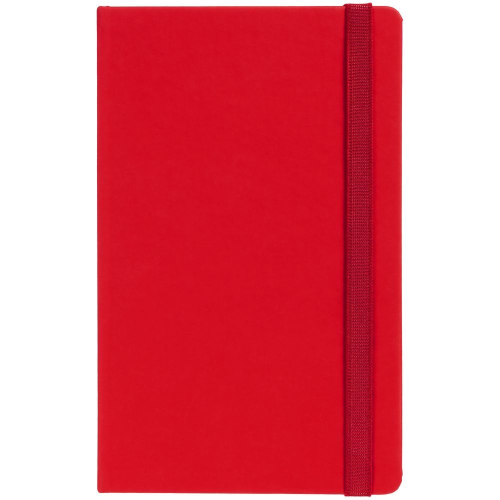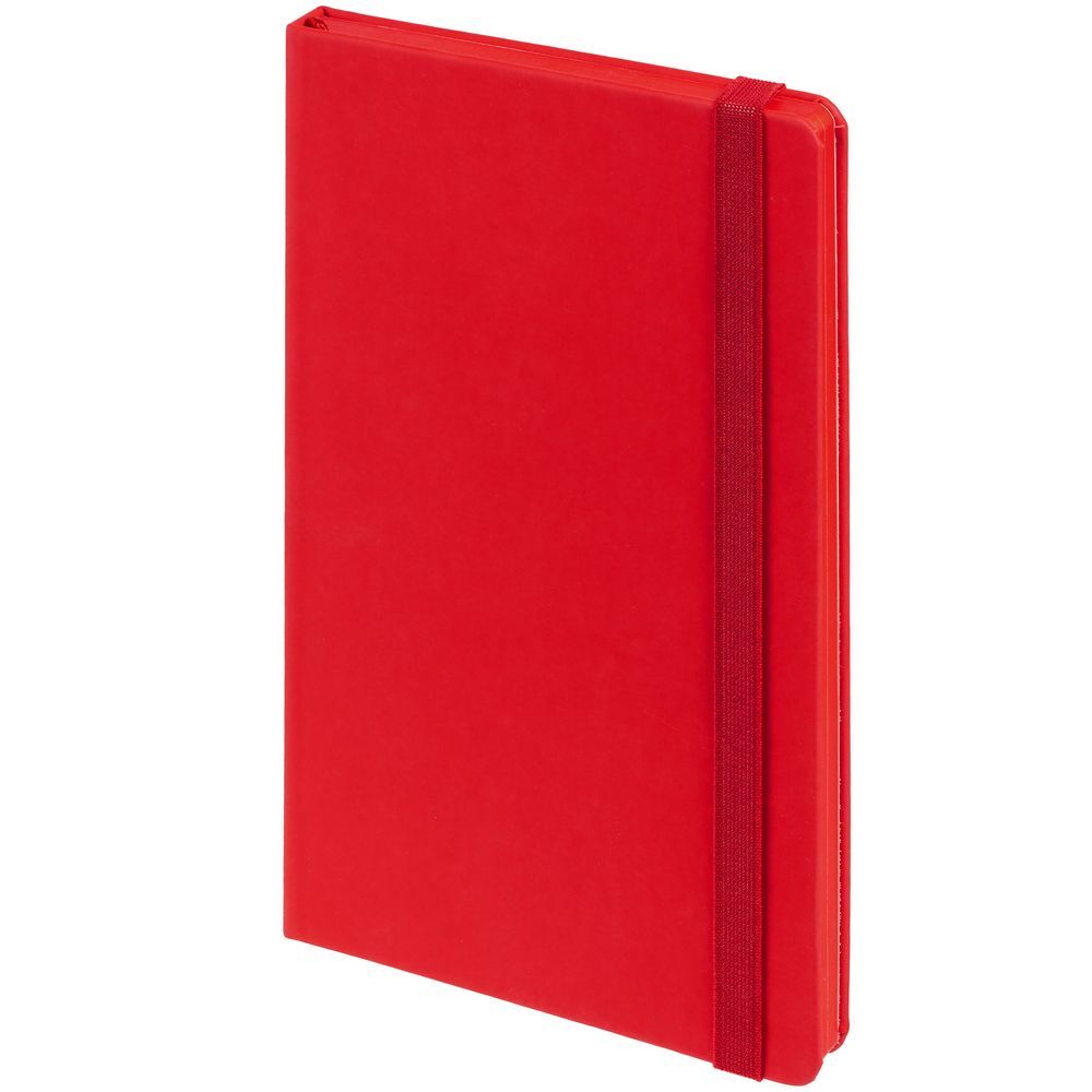 Блокнот в твердой обложке, выполнен из материала Soft Touch Ultra, красный РР, дополнен резинкой и ляссе в цвет обложки.Блок 297 в линейку:Кол-во страниц — 192;Бумага — белая, плотность 70 г/м²;Обрез — красный;Форзац и нахзац — белые.