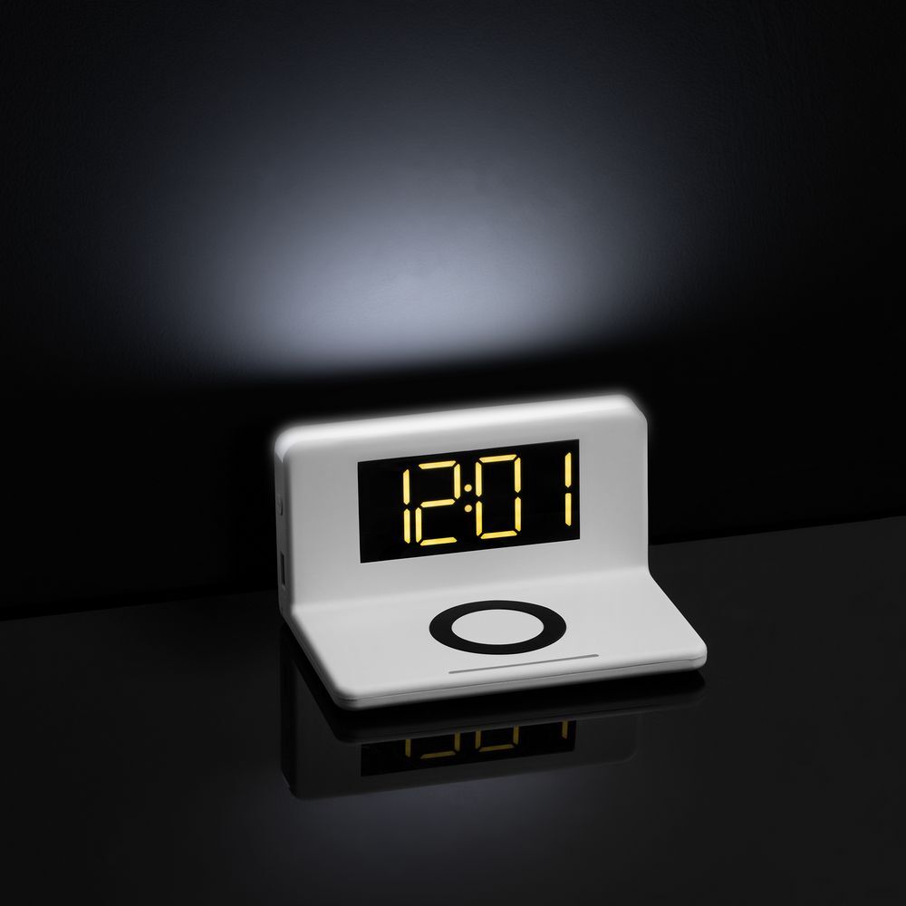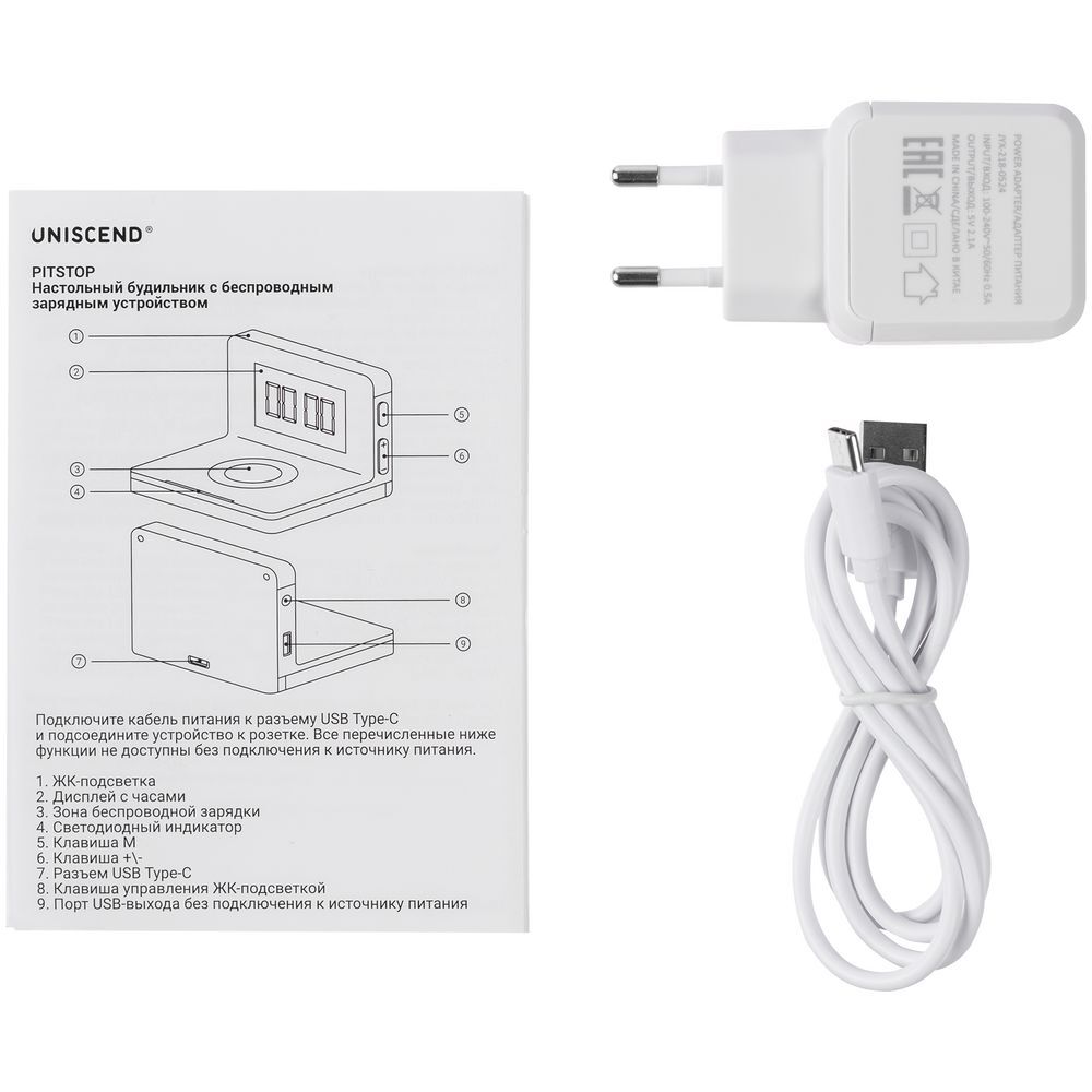 Pitstop — многофункциональное устройство, которое сочетает в себе функции настольных часов, будильника, станции для беспроводной и проводной зарядки устройств и ночника.Зарядная станция совместима со всеми мобильными устройствами, поддерживающими технологию беспроводной зарядки Qi. Зарядка начнется автоматически при размещении смартфона на индукционной площадке. USB-порт для проводной зарядки расположен в торце устройства. Три режима подсветки разной интенсивности позволяют использовать Pitstop в качестве дополнительного источника света днем или ночью. Беспроводная зарядка стандарта QiРегулируемая подсветка с тремя уровнями яркостиНастольные часыБудильникВход: 5 В/2 A, 9 В/1,67 AВыход беспроводной зарядки: 5 В/2 AВыход USB: 5 В/1 А (макс)Работает от сетиАдаптер питания и кабель в комплектеПоставляется в индивидуальной упаковке.Внимание! Не все модели смартфонов поддерживают функцию беспроводной зарядки.