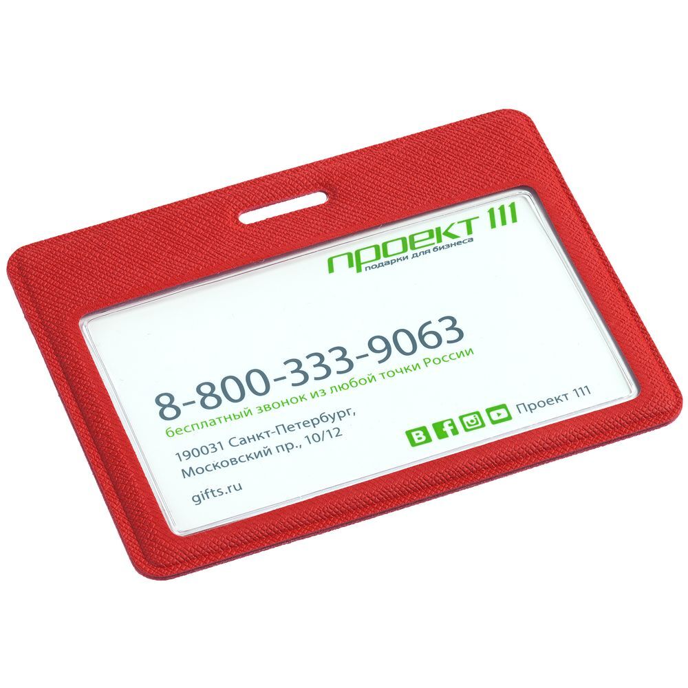 Чехол для карточки с пластиковым окошком из искусственного материала, имитирующего сафьяновую кожу.На задней части чехла есть карман для второй карточки или визитки.Подходит для стандартного пропуска 82x55 мм.