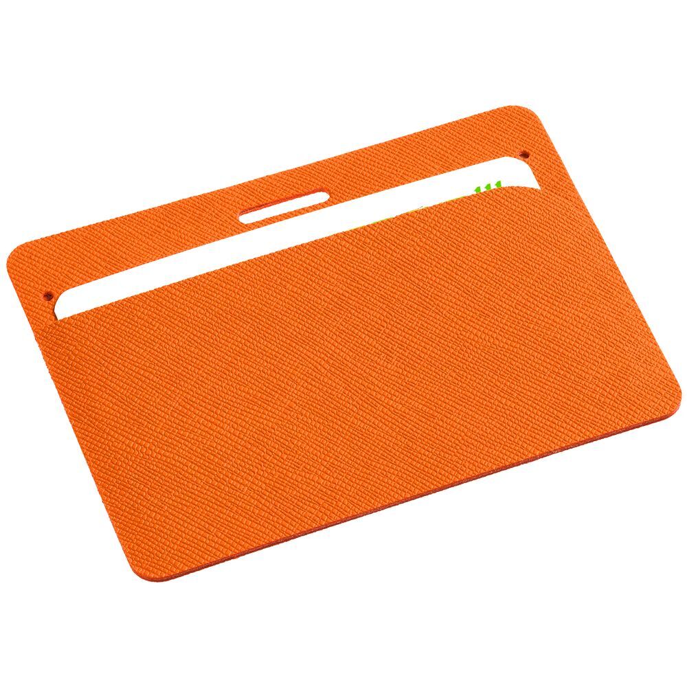 Чехол для карточки с пластиковым окошком из искусственного материала, имитирующего сафьяновую кожу.На задней части чехла есть карман для второй карточки или визитки.Подходит для стандартного пропуска 82x55 мм.