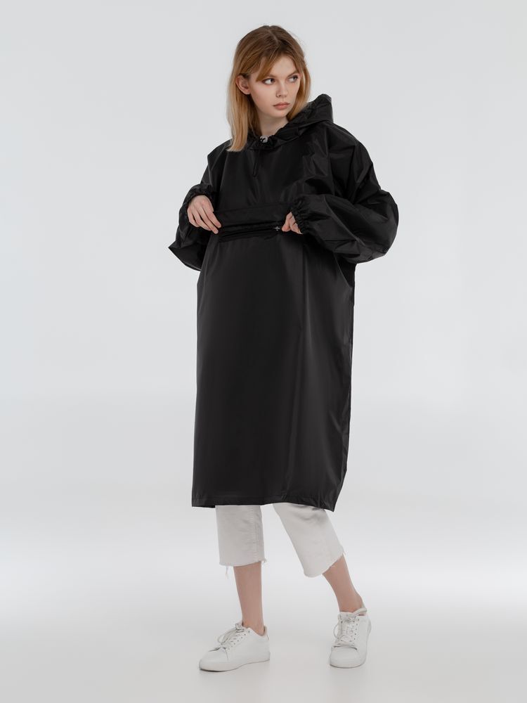 Дождевик-анорак с капюшоном из ткани таффета.Манжеты на резинкеКарман с клапаном на молнииУтягивающий шнур в капюшонеЦельнокроеное плечо обеспечивает дополнительную защиту от промоканияКомпактно складывается сам в себя — в карманТаблица размеров, смЕдиный размерA82B108C77Допускаются отклонения в 5% от указанных параметров по размеру и цвету.