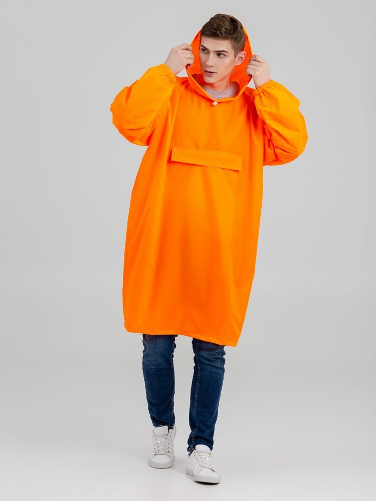 Дождевик-анорак с капюшоном из ткани таффета.Манжеты на резинкеКарман с клапаном на молнииУтягивающий шнур в капюшонеЦельнокроеное плечо обеспечивает дополнительную защиту от промоканияКомпактно складывается сам в себя — в карманТаблица размеров, смЕдиный размерA82B108C77Допускаются отклонения в 5% от указанных параметров по размеру и цвету.