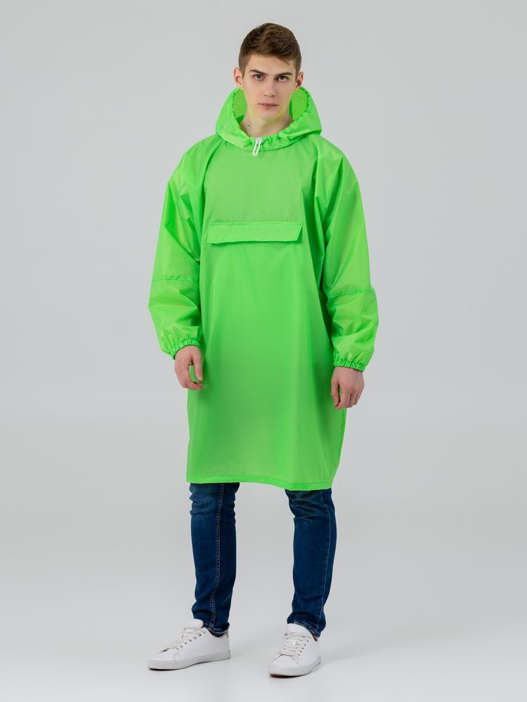 Дождевик-анорак с капюшоном из ткани таффета.Манжеты на резинкеКарман с клапаном на молнииУтягивающий шнур в капюшонеЦельнокроеное плечо обеспечивает дополнительную защиту от промоканияКомпактно складывается сам в себя — в карманТаблица размеров, смЕдиный размерA82B108C77Допускаются отклонения в 5% от указанных параметров по размеру и цвету.