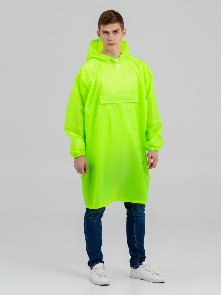 Дождевик-анорак с капюшоном из ткани таффета.Манжеты на резинкеКарман с клапаном на молнииУтягивающий шнур в капюшонеЦельнокроеное плечо обеспечивает дополнительную защиту от промоканияКомпактно складывается сам в себя — в карманТаблица размеров, смЕдиный размерA82B108C77Допускаются отклонения в 5% от указанных параметров по размеру и цвету.