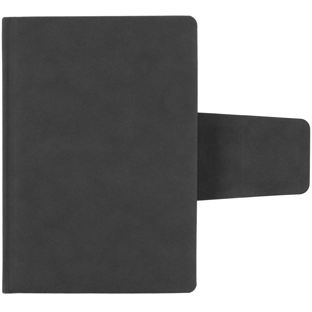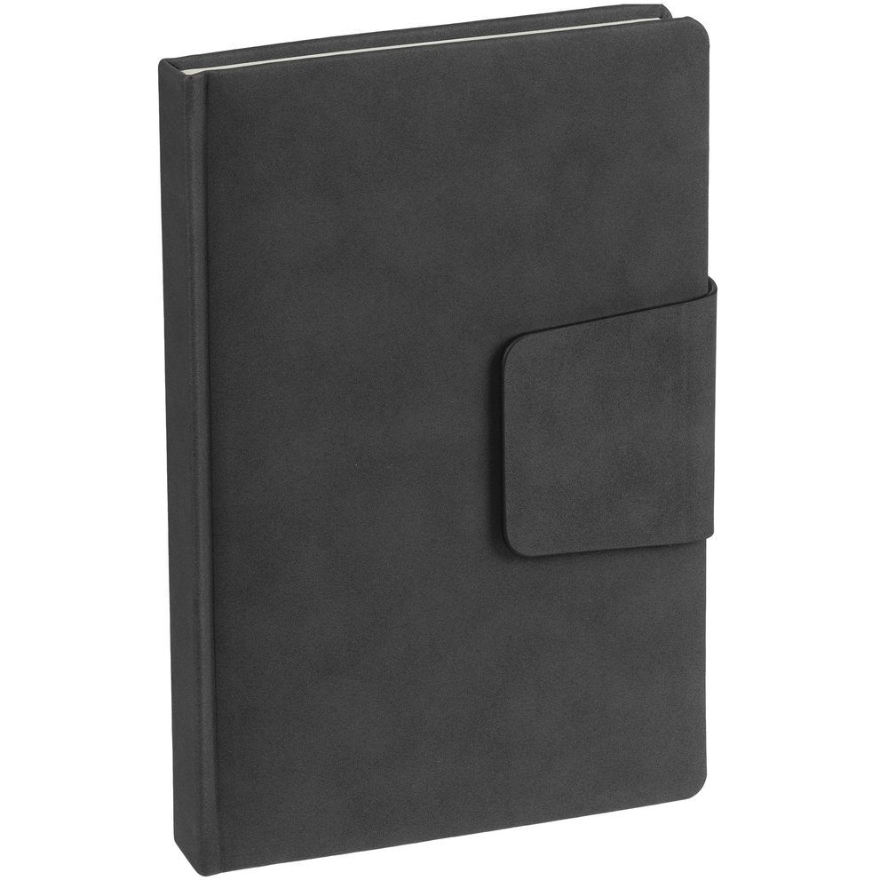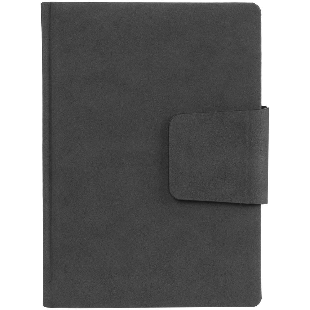 Ежедневник с твердой обложкой c поролоном, выполнен из материала Nubuck, темно-серый ЕЕ, дополнен капталом и ляссе черного цвета. Застежка — магнитный хлястик.Блок 988, с информационным блоком и календарной сеткой:Кол-во страниц — 336;Бумага — тонированная, плотность 70 г/м²;Форзац и нахзац — тонированные.