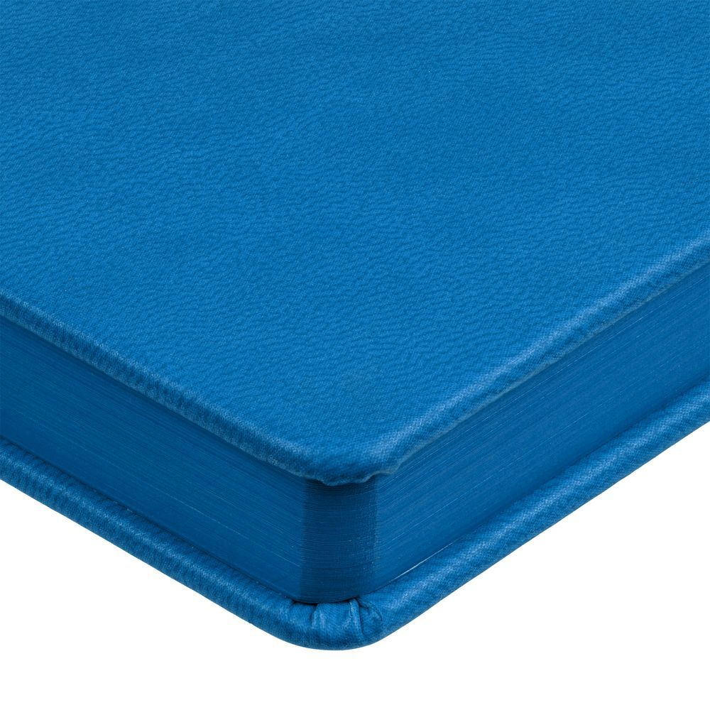 Ежедневник с твердой обложкой и тонированным обрезом. Выполнен из материала Latte, ярко-синий, дополнен ляссе в цвет обложки.Блок недатированный, без календарной сетки:Кол-во страниц — 256;Бумага — белая, плотность 70 г/м²;Форзац и нахзац — белого цвета.
