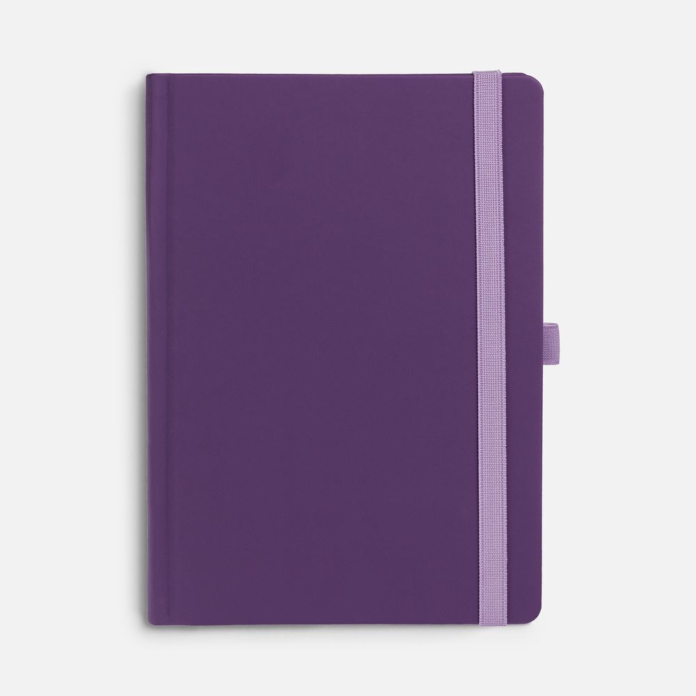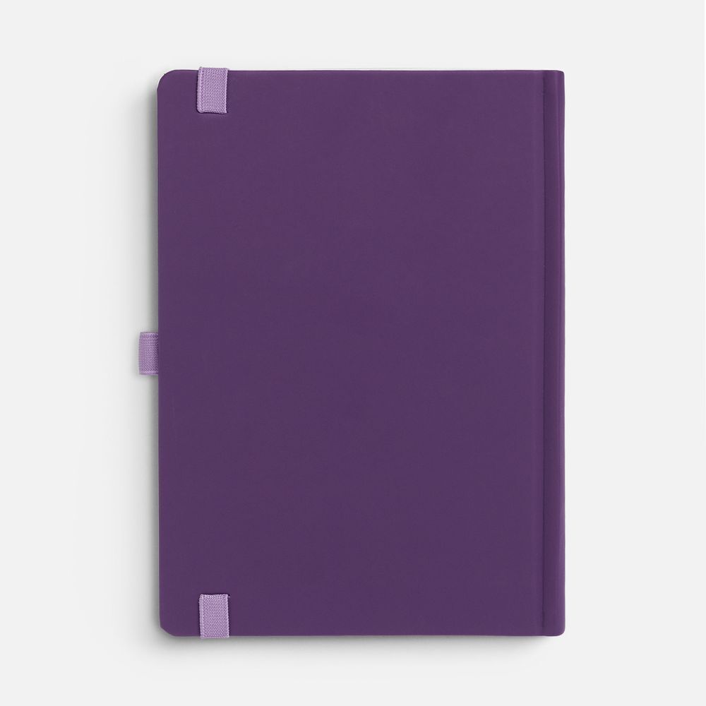 Ежедневник с твердой обложкой без поролона, выполнен из материала Soft Touch, фиолетовый UU, дополнен резинкой шириной 1 см, петлей-резинкой для ручки, капталом и ляссе в цвет обложки.Блок 922, с информационным блоком:Кол-во страниц — 336;Бумага — белая, плотность 70 г/м²;Форзац и нахзац — белого цвета.