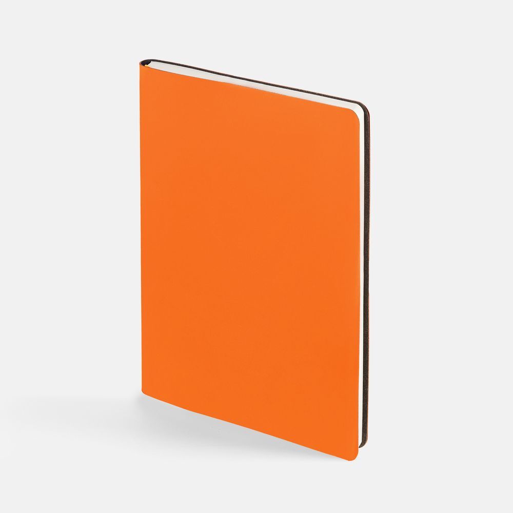 Ежедневник с гибкой обложкой, выполнен из материала Soft Touch, оранжевый ОО.Блок 207, датирован на 2026 год, с информационным блоком:Кол-во страниц — 320;Бумага — белая, плотность 70 г/м²;Форзац и нахзац — белые.