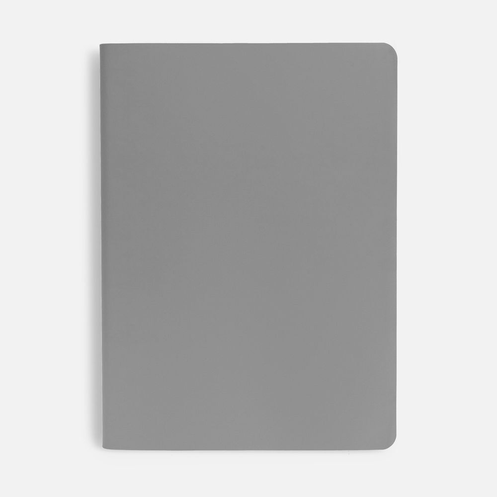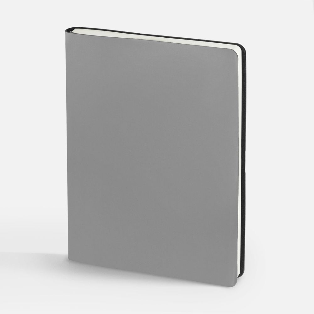 Ежедневник с гибкой обложкой, выполнен из материала Soft Touch, серый СС.Блок 207, датирован на 2026 год, с информационным блоком:Кол-во страниц — 320;Бумага — белая, плотность 70 г/м²;Форзац и нахзац — белые.
