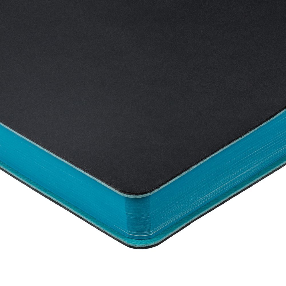 Гибкая обложка ежедневника выполнена из материала Soft Touch Pearl, черный АА и цветного Latte (внутренняя часть обложки).Внутри корешка — специальное место для крепления ручки размером до 15х0,9 см.Блок 986, без информационного блока:Кол-во страниц — 256;Бумага — тонированная, плотность 80 г/м²;Обрез блока — цветной;Форзац и нахзац — цветные.