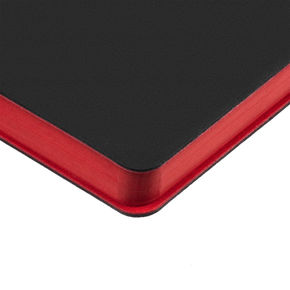 Гибкая обложка ежедневника выполнена из материала Soft Touch Pearl, черный АА и цветного Latte (внутренняя часть обложки).Внутри корешка — специальное место для крепления ручки размером до 15х0,9 см.Блок 986, без информационного блока:Кол-во страниц — 256;Бумага — тонированная, плотность 80 г/м²;Обрез блока — цветной;Форзац и нахзац — цветные.