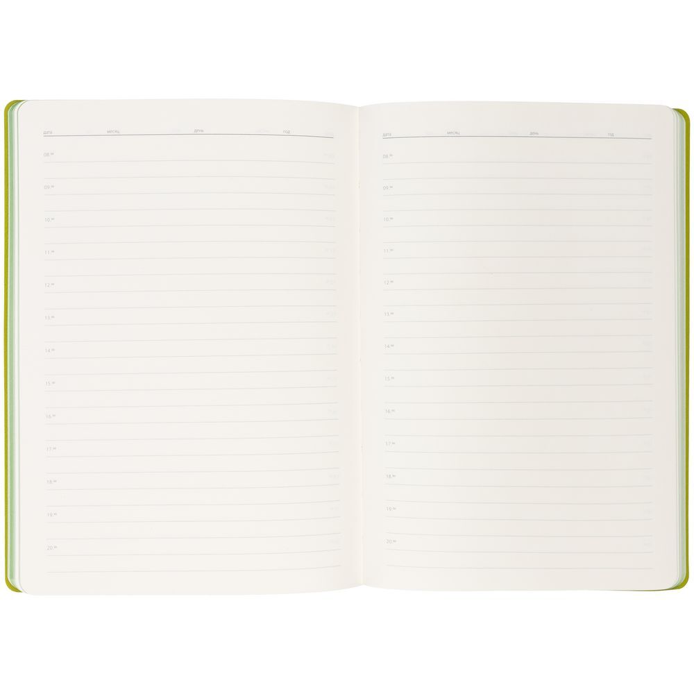 Гибкая обложка ежедневника выполнена из материала Soft Touch Pearl, черный АА и цветного Latte (внутренняя часть обложки).Внутри корешка — специальное место для крепления ручки размером до 15х0,9 см.Блок 986, без информационного блока:Кол-во страниц — 256;Бумага — тонированная, плотность 80 г/м²;Обрез блока — цветной;Форзац и нахзац — цветные.
