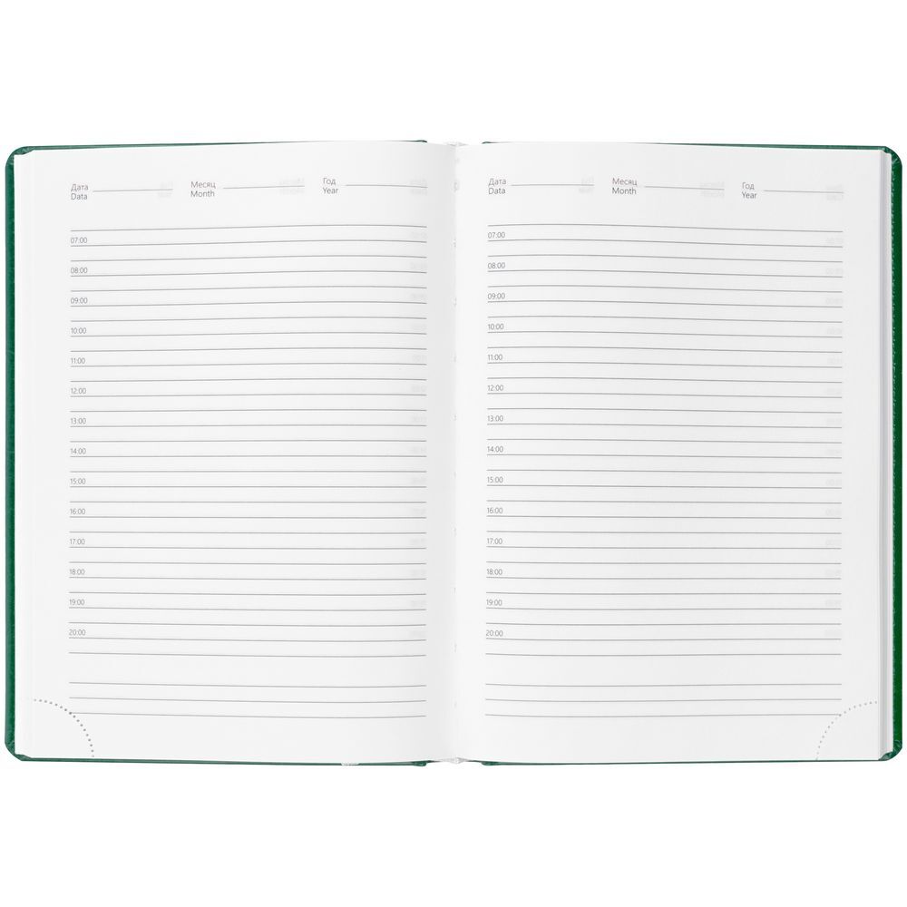 Классическая обложка с поролоном из материалаNebraska, зеленый FF.Блок 920: недатированный, с информационным блоком.Кол-во страниц — 336;Бумага — белая, плотность 70 г/м²;Форзац и нахзац — белые.
