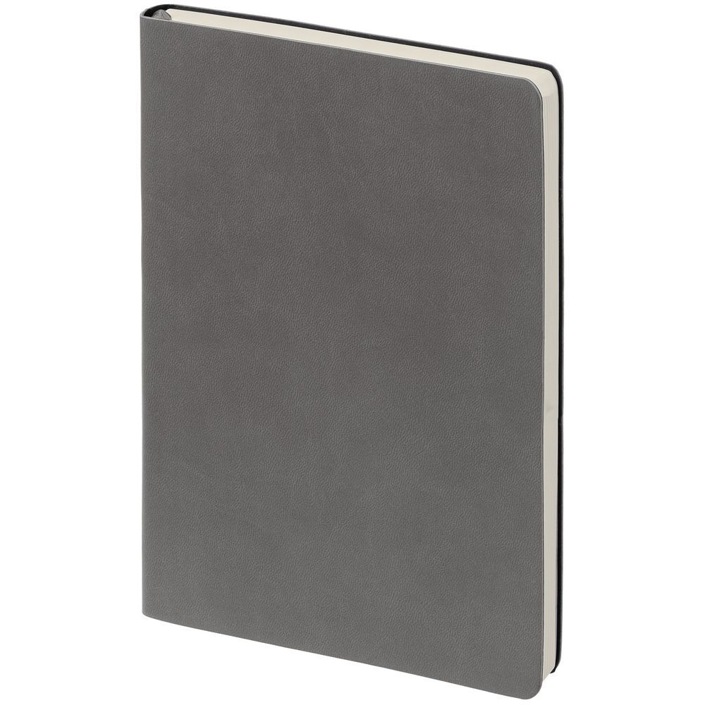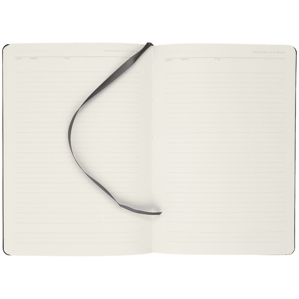 Ежедневник с гибкой обложкой, выполнен из материала Latte, темно-серый, дополнен ляссе в цвет обложки.Блок недатированный, без календарной сетки:Кол-во страниц — 256;Бумага — тонированная, плотность 70 г/м².
