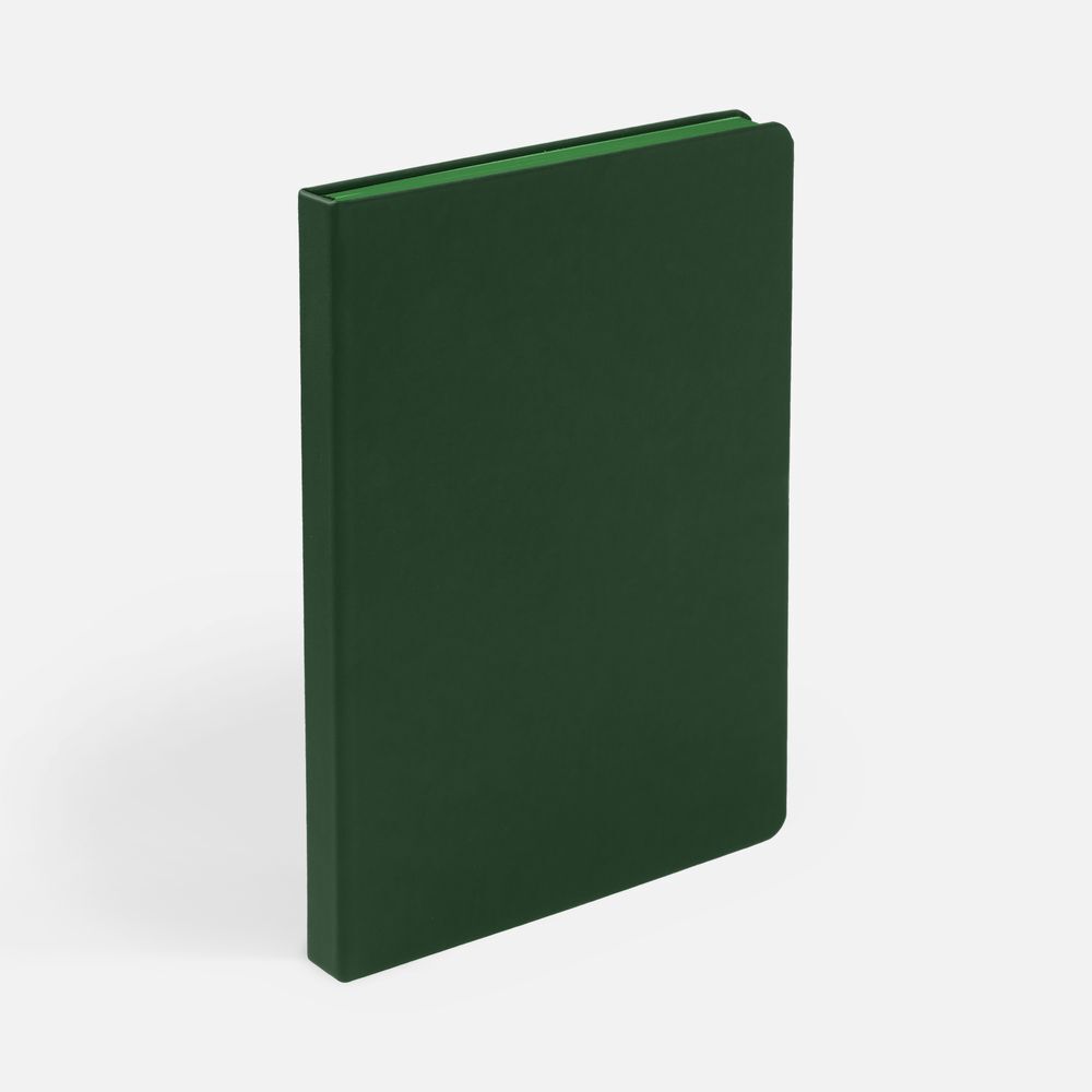 Ежедневник с твердой обложкой и тонированным обрезом, выполнен из материала Soft Touch, зеленый FF, дополнен ляссе в цвет обложки.Блок 986, без календарной сетки и информационного блока:Кол-во страниц — 256;Бумага — тонированная, плотность 70 г/м²;Форзац и нахзац — зеленые.