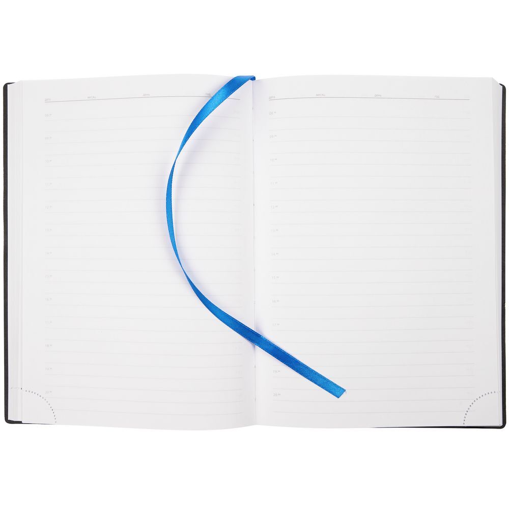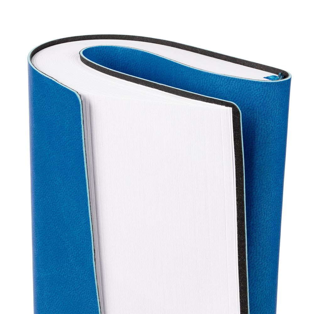 Ежедневник с гибкой обложкой, выполнен из материала Latte, синий НН, дополнен резинкой шириной 1 см, капталом и ляссе синего цвета.Блок 922, с информационным блоком:Кол-во страниц — 336;Бумага — белая, плотность 70 г/м²;Форзац и нахзац — белого цвета.