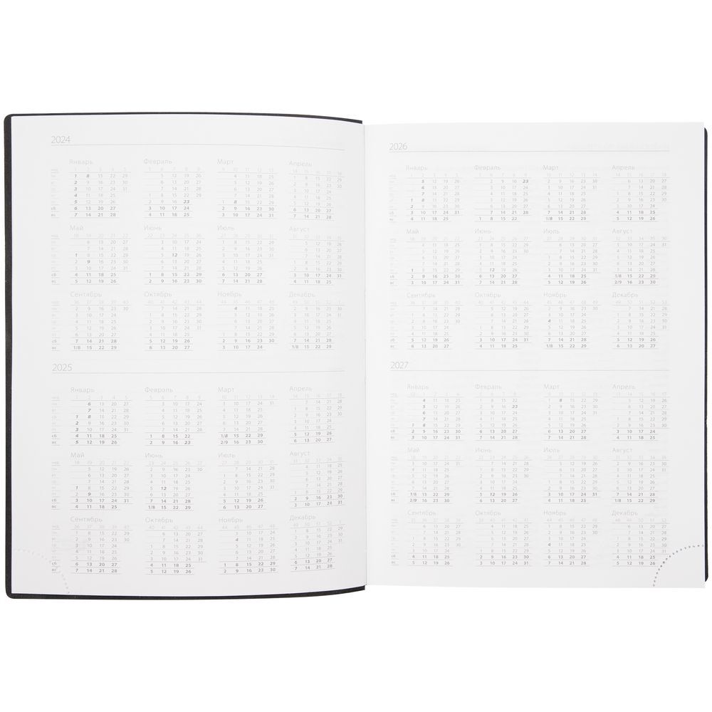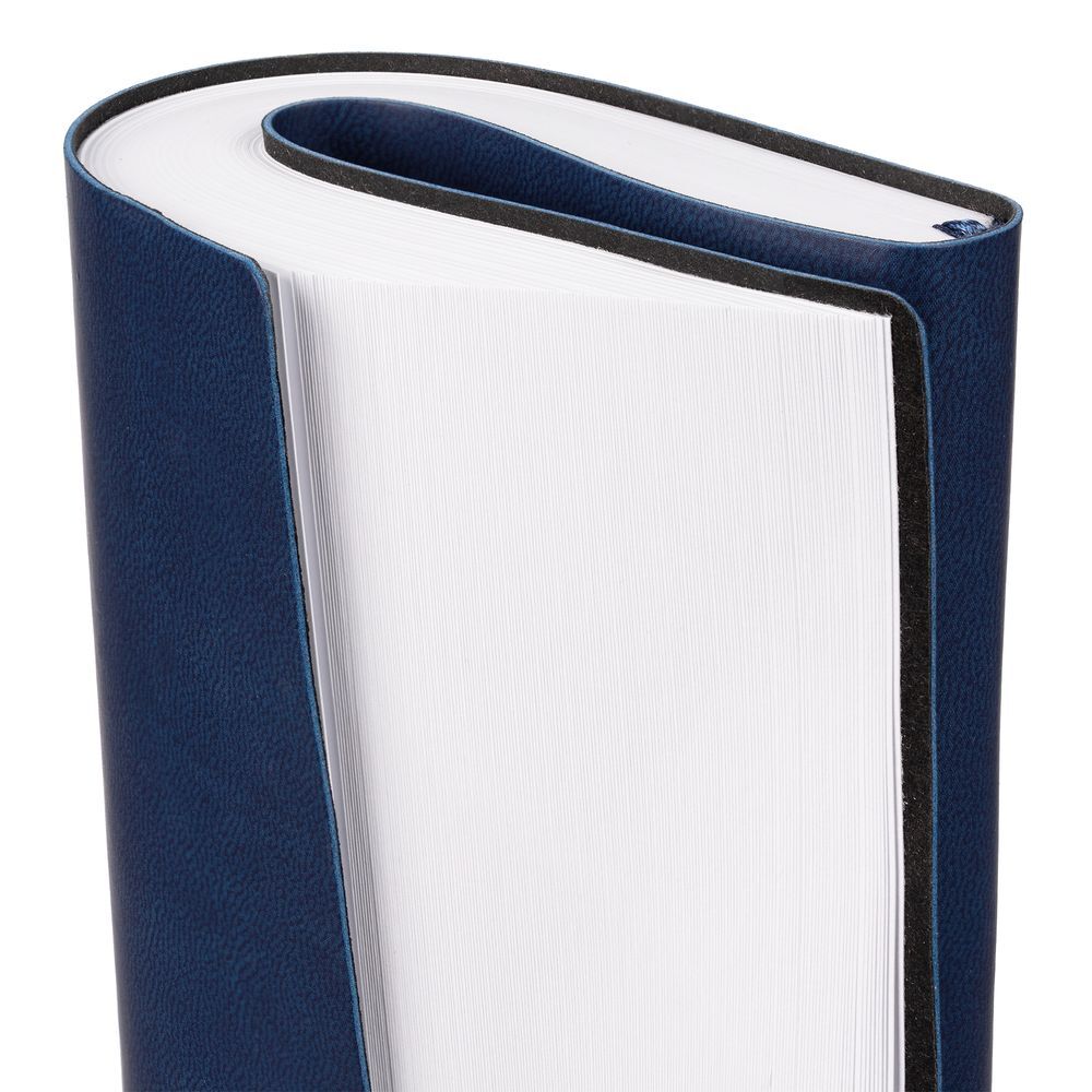 Ежедневник с гибкой обложкой, выполнен из материала Latte, темно-синий НН, дополнен резинкой шириной 1 см, капталом и ляссе темно-синего цвета.Блок 922:Кол-во страниц — 336;Бумага — белая, плотность 70 г/м²;Форзац и нахзац — белого цвета.