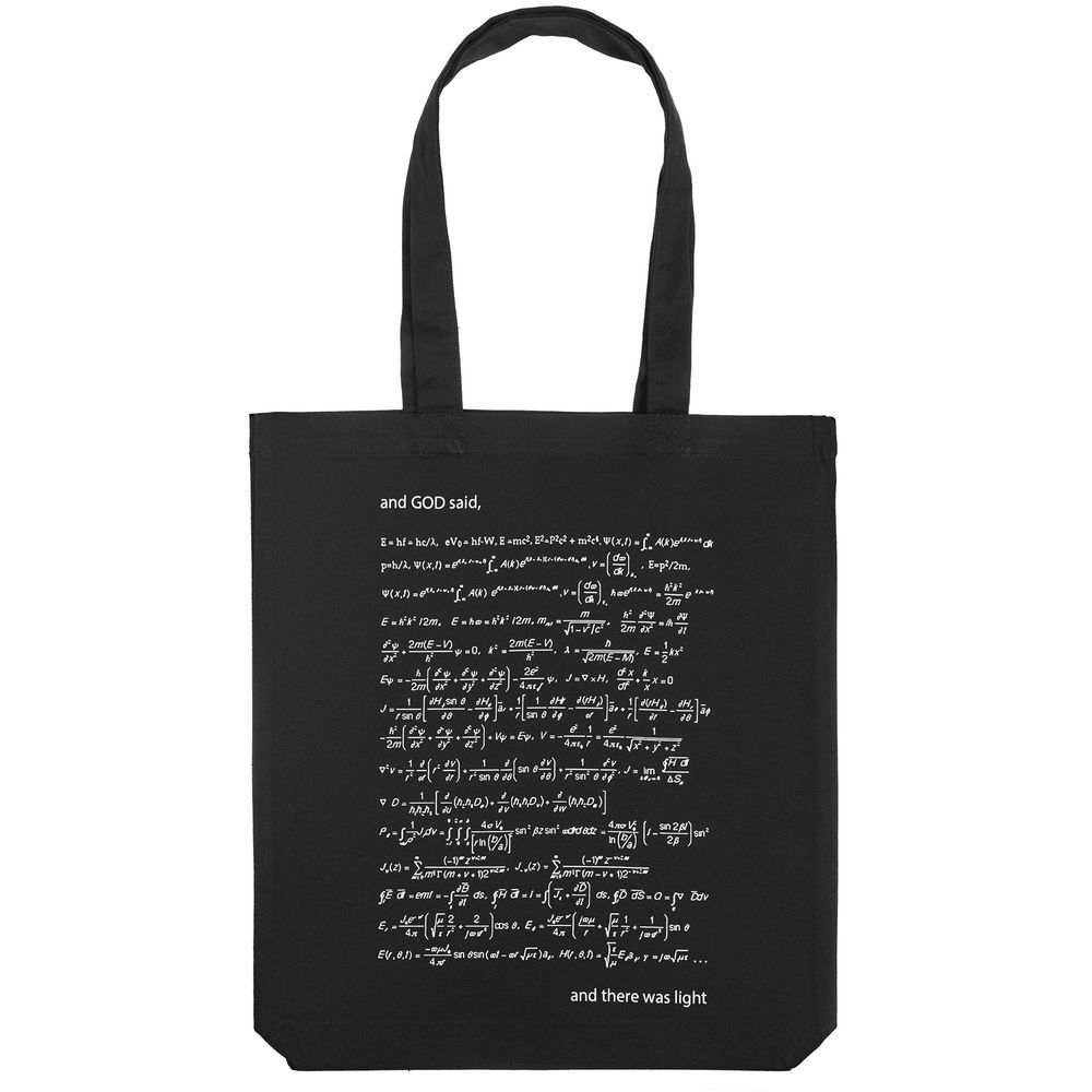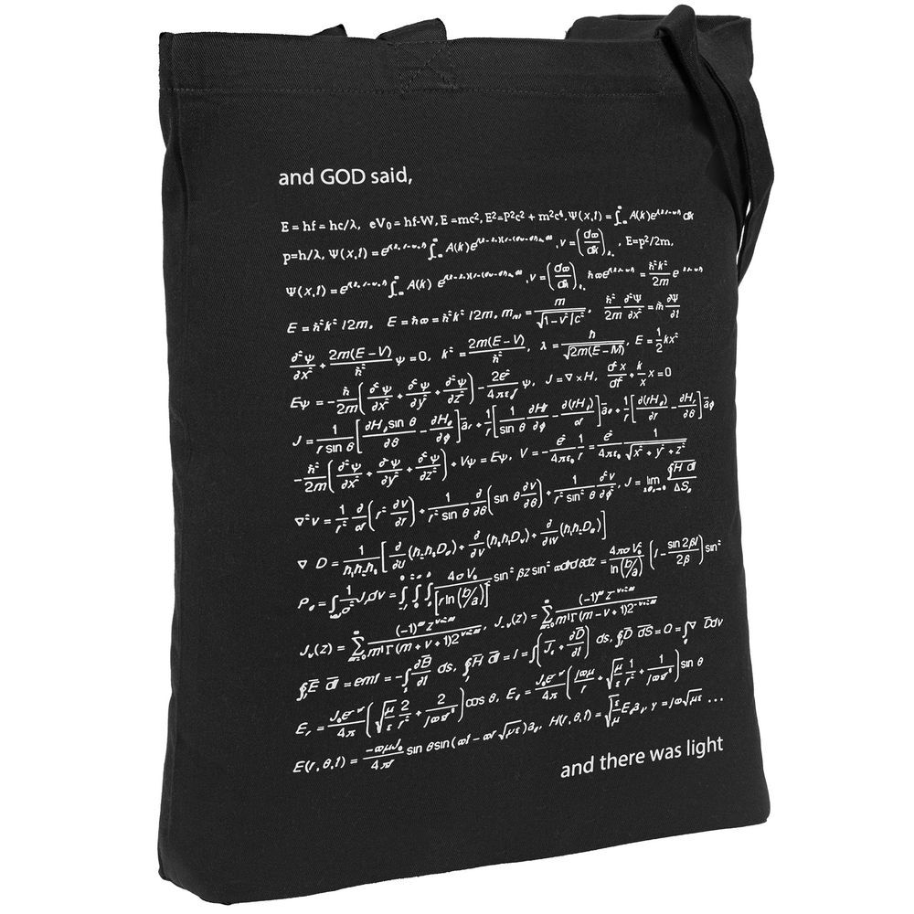 Обыденные явления, простые на первый взгляд, на деле часто оказываются сложнее и интереснее. За лаконичным и изящным решением стоит огромная работа, скрытая от посторонних глаз. Как знать, не была ли фраза «Да будет свет!» произнесена на языке физических формул? Покажите всем, что вы не скользите по верхам, а уделяете внимание каждой детали.Принт выполнен светонакопительной краской, которая вбирает свет из внешних источников (естественных или искусственных) и светится в темноте.Выдерживает нагрузку до 10 кг.Способ обработки внутреннего шва: оверлок.