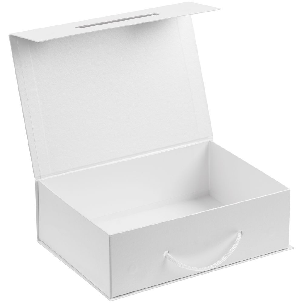 Коробка выполнена из переплетного картона, кашированного дизайнерской бумагой Majestic, с крышкой на магните.Длина ручки 35 см.Конструкция коробки предусматривает наличие технологического зазора шириной до 2 мм по линии сопряжения короба и крышки.
