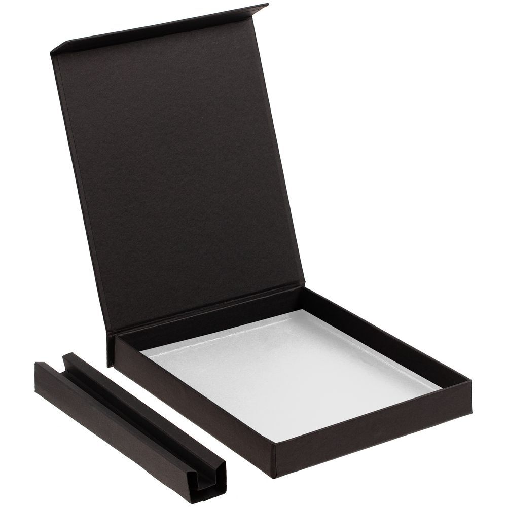 Коробка выполнена из переплетного картона, кашированного гладкой дизайнерской бумагой Magic, с крышкой на магните.Внутренний размер коробки без съемного ложемента под ручку: 13,5х16,5х1,9 смВнутренний размер коробки с ложементом под ручку: 11х16,5х1,9 см.Размер ложемента под ручку: 2,6х16,4х1,9 см.