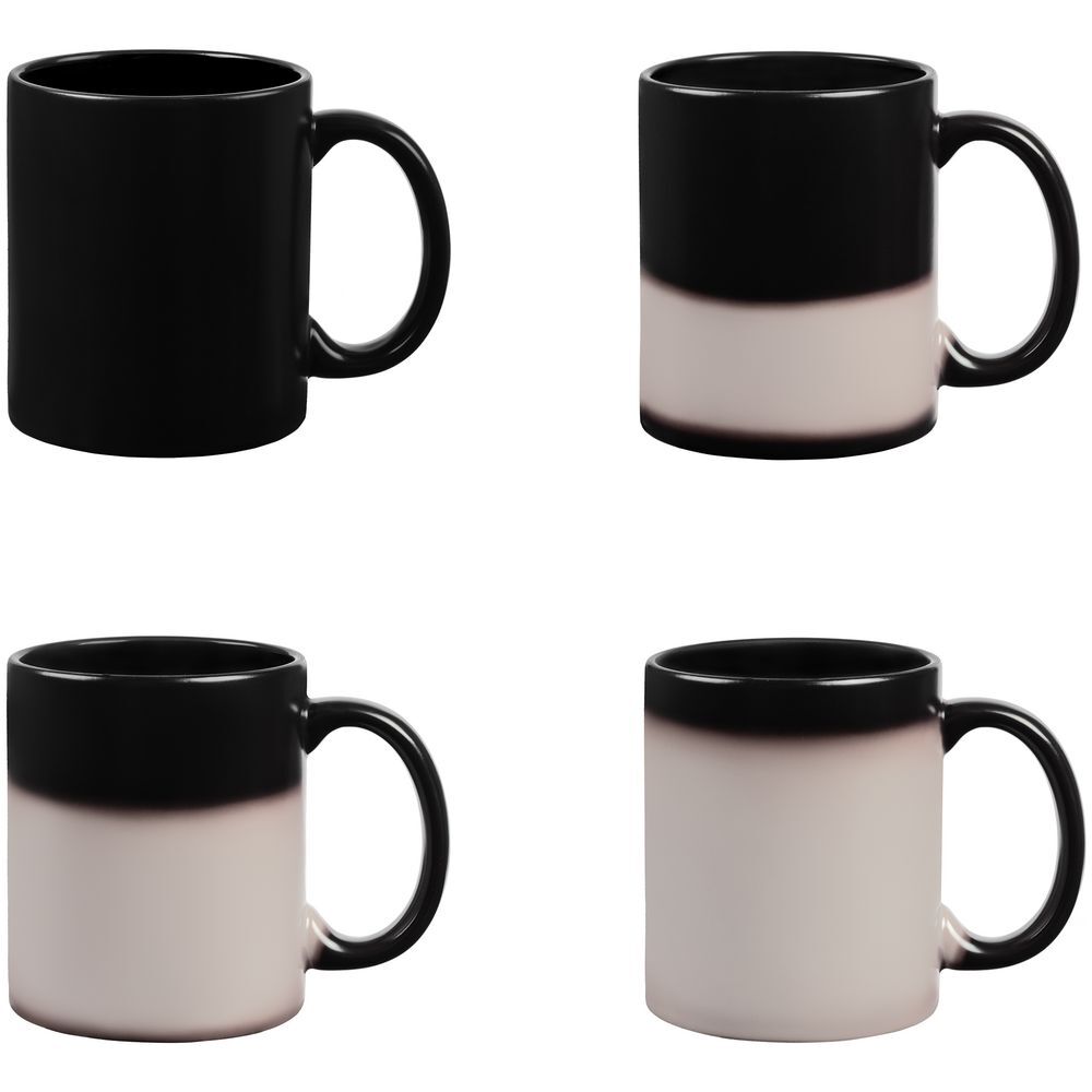 Кружка-хамелеон обладает интересным эффектом: стоит налить горячую воду, и ее цвет поменяется с черного на белый.Емкость 330 мл.На поверхности кружки встречаются пятна, которые исчезают после нагрева в термопрессе.