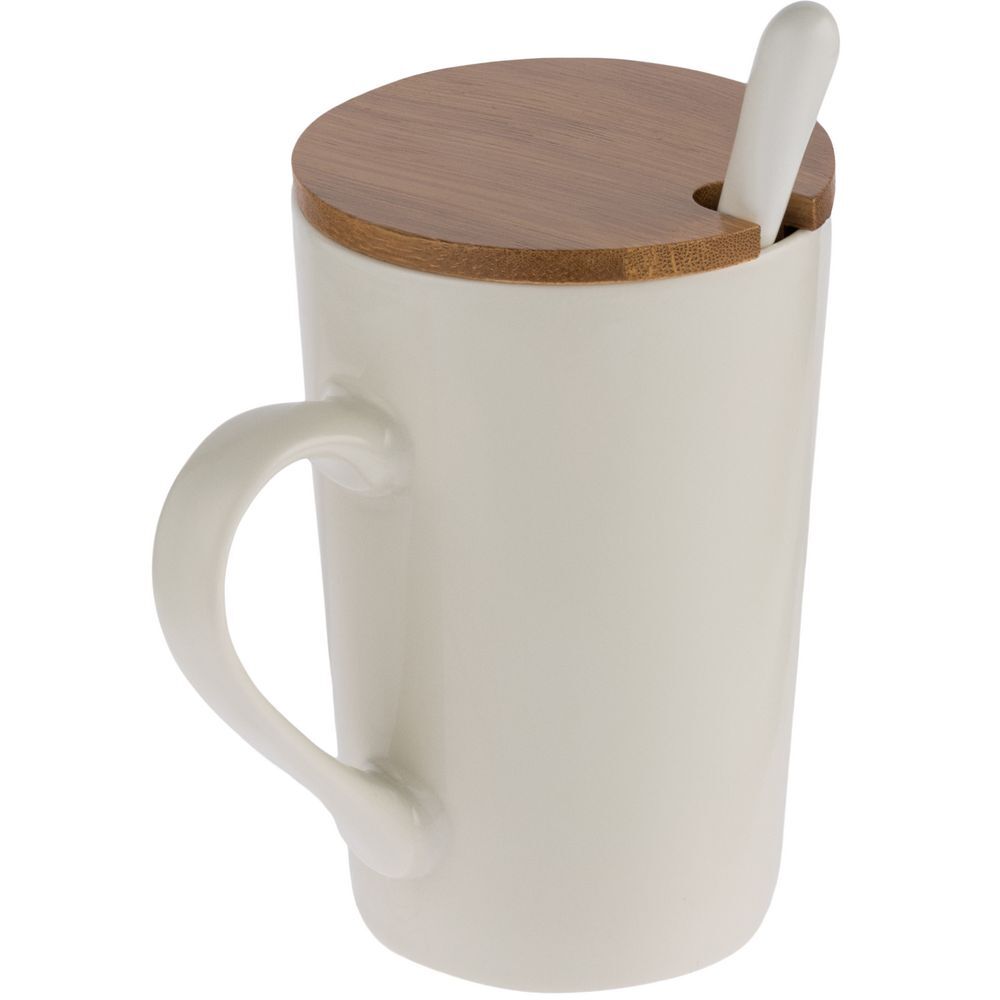 фарфор; крышка - бамбук; ложка - нержавеющая сталь