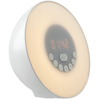 DreamTime — это мультимедийная станция, которая позволяет начать день максимально естественно и вставать «с первыми лучами солнца» в любой день года. Лампа активируется за некоторое время до настроенного будильника и постепенно увеличивает яркость вплоть до момента, когда вы планируете окончательно проснуться. Эффект мягкого пробуждения можно дополнить звуками природы: шумом волн или пением птиц.Лампа также может служить интерьерным светильником с 7 оттенками подсветки и медиаплеером, позволяющим воспроизводить музыку через Bluetooth, от внешнего источника аудио или с карты памяти, а также слушать FM-радио.Bluetooth 4.2Два динамика мощностью 3 ВтВоспроизведение музыки через карту памяти, подключение внешнего аудио (AUX)FM-радиоЦифровые часы и будильникРегулируемая яркость светаНатуральный теплый светРазноцветная подсветкаИмитация закатаВстроенные натуральные звуки природыФункция приема звонковВстроенная батарея 1800 мАчСенсорные клавиши управленияПоставляется в индивидуальной упаковке.