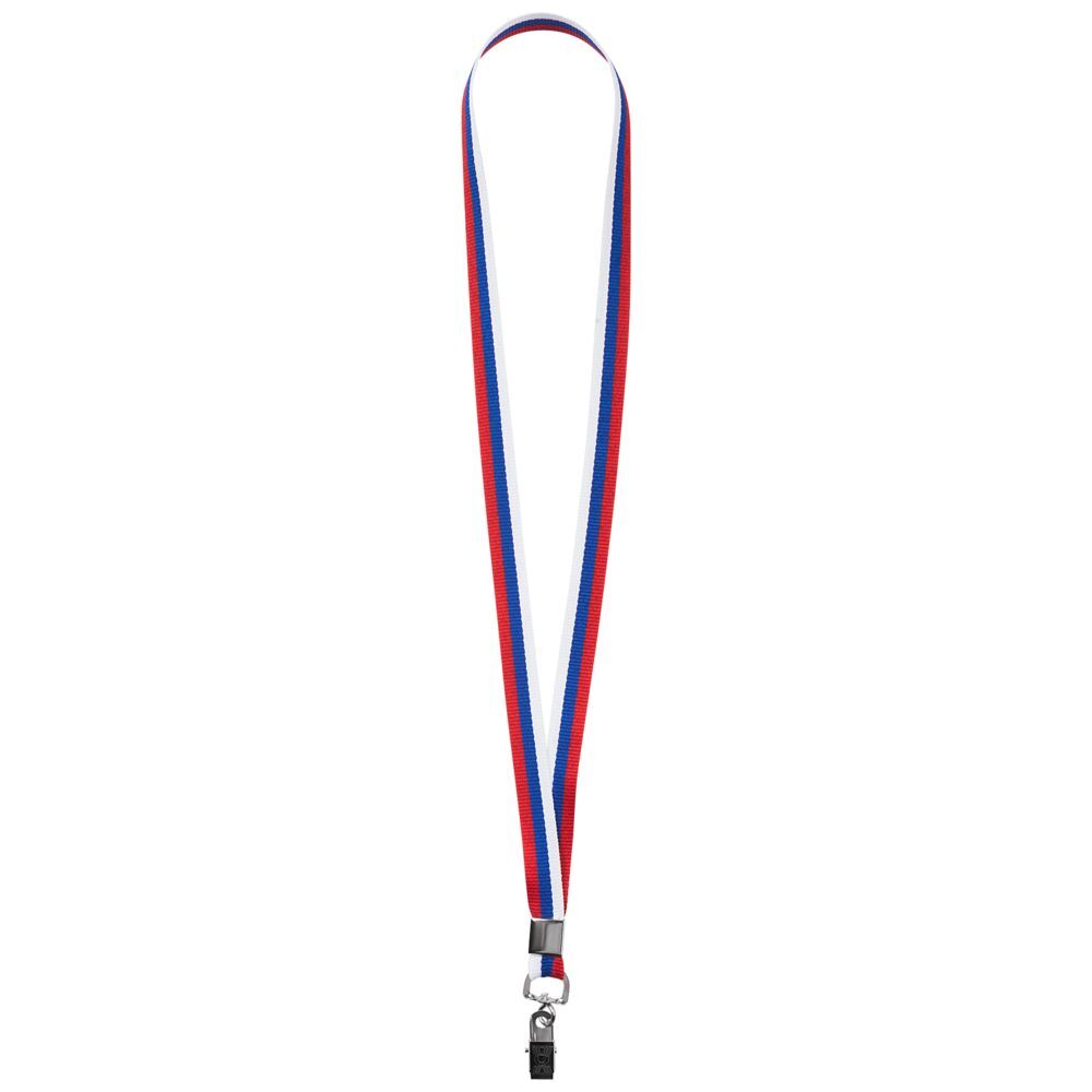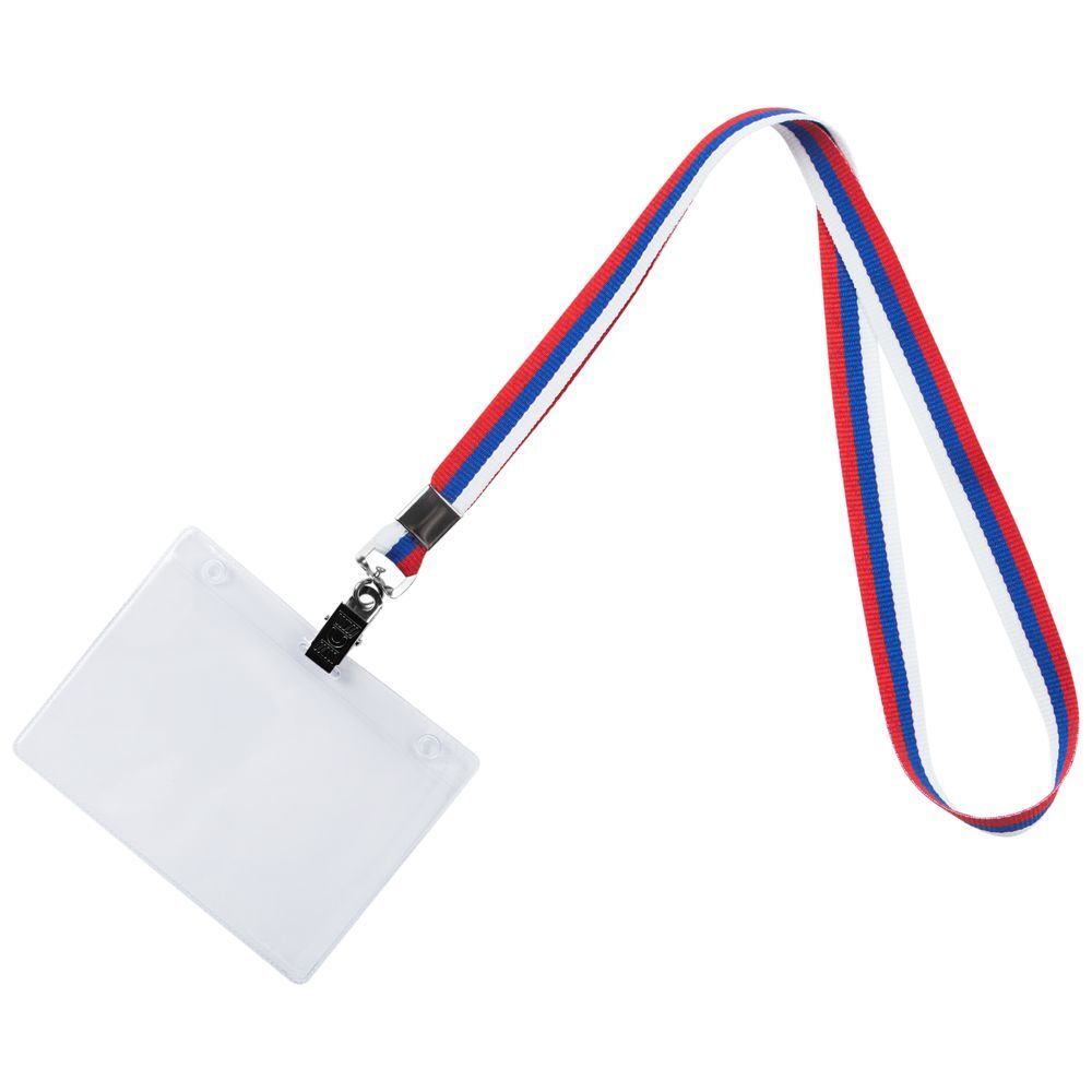 Карман для бейджа продается отдельно.Бейдж крепится к ленте с помощью металлической клипсы.