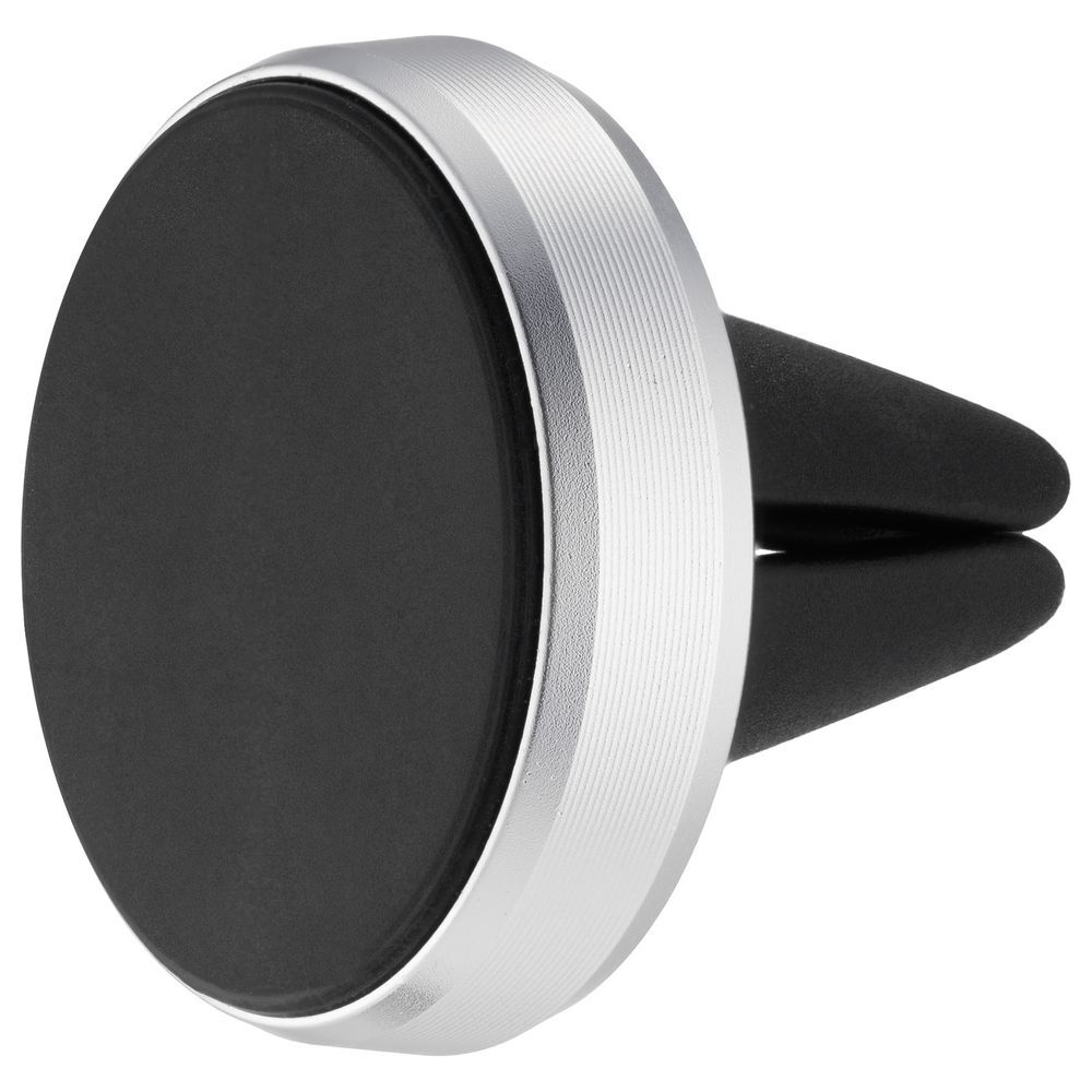 Магнитный держатель для смартфонов с креплением в воздуховод. В комплекте две металлические пластины, которые можно приклеить с помощью двухстороннего скотча (в комплекте) или вложить под заднюю крышку или чехол, чтобы не портить внешний вид телефона.Выдерживает устройство массой до 200 г.Магнитное крепление безопасно для мобильных устройств.Перед нанесением логотипа удалите защитную пленку с металлической пластины.