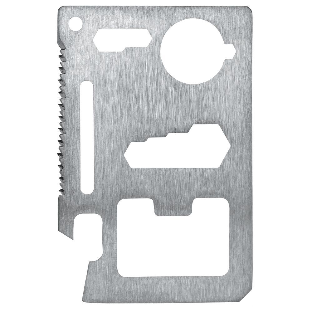 Суперкомпактный мультитул Dextro с 11 функциями будет всегда под рукой и выручит и в городе, и в лесу. По размеру он чуть больше привычной пластиковой карточки, но все еще помещается в карман сумки или в отделение для карт в портмоне. Чехол из искусственной кожи защищает окружающие предметы от повреждений, которые могут быть вызваны острыми краями мультитула.11 функцийОткрывалка для бутылок.Лезвие ножа.Плоская отвертка.Линейка.Открывалка для банок.Гаечный ключ, 4 размера.Ключ для барашкового винта.Пила.Транспортир.Гаечный ключ, 2 размера.Отверстие для крепления ланьярда или кольца для ключей.Мультиинструмент изготовлен из нержавеющей инструментальной стали.Поставляется в чехле и индивидуальном пакетике.