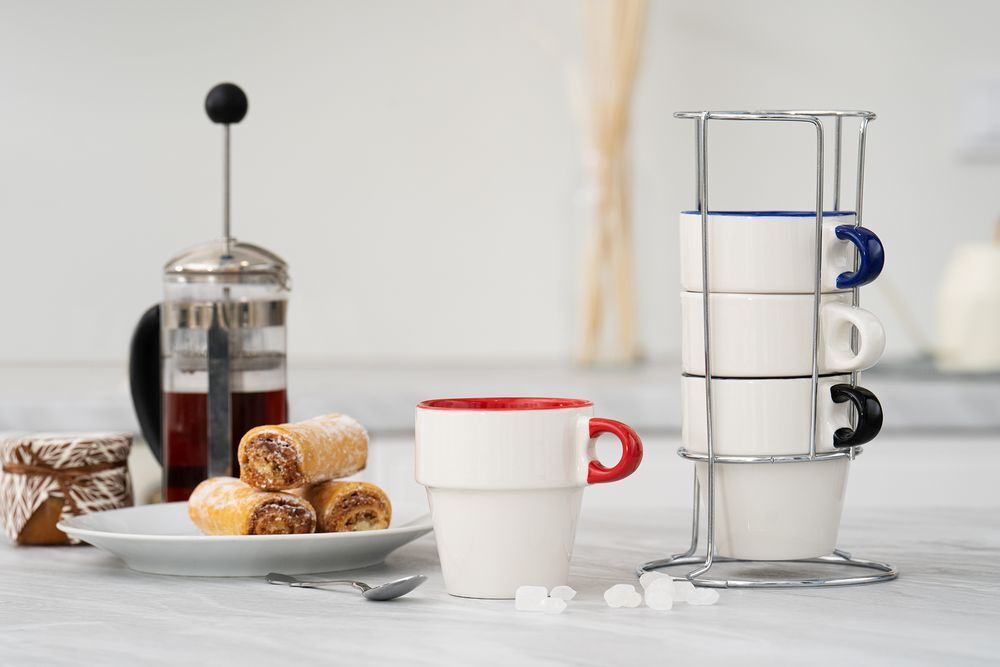 Вертикальное хранение кружек экономит место на кухне, а подставка собирает набор в единое целое. Набор Inset — красивое решение для компактной кухни.Емкость кружки 220 мл.
