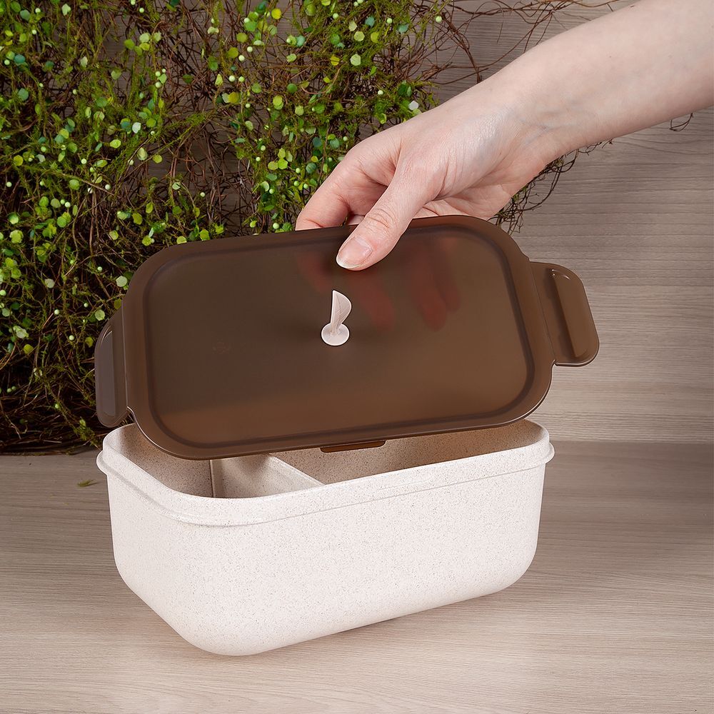 Контейнеры и столовые приборы greenMeal изготовлены из композитного материала с добавлением шелухи рисового зерна, что сокращает потребление синтетических полимеров.Прочные и легкие ланч-боксы удобны в использовании. Подходят для горячих и холодных продуктов, их можно мыть в посудомоечной машине и разогревать в микроволновой печи.Состав набора: Ланчбокс 1200 млДва контейнера 360 и 420 млПластиковые приборы: нож, ложка и вилкаСумка