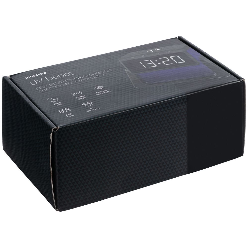 UV Depot — многофункциональное устройство, которое сочетает в себе функции настольных часов, будильника, станции для беспроводной и проводной зарядки устройств и стерилизатора.Зарядная станция совместима со всеми мобильными устройствами, поддерживающими технологию беспроводной зарядки Qi. Зарядка начнется автоматически при размещении смартфона на индукционной площадке. USB-порт для проводной зарядки расположен на задней стенке устройства.Стерилизатор может использоваться для дезинфекции смартфонов, ключей, монет, банкнот, ювелирных изделий, косметики и прочих мелких бытовых предметов из любых материалов.Часы позволяют следить за временем, а будильник — настроить время пробуждения или напоминания о необходимости завершить задачу. Беспроводная зарядка стандарта QiВход: 5 В, 2 A; 9 В, 1,67 AВыход беспроводной зарядки: 5 В, 2 AВыход USB: 5 В, 1 А (макс)Настольные часыБудильникСтерилизация ультрафиолетомДлина волны УФ-излучения: 275–395 нмМощность УФ-излучения: 0,75 ВтРаботает при питании от сетиАдаптер питания и кабель в комплектеПоставляется в индивидуальной упаковке.Внимание! Не все модели смартфонов поддерживают функцию беспроводной зарядки.