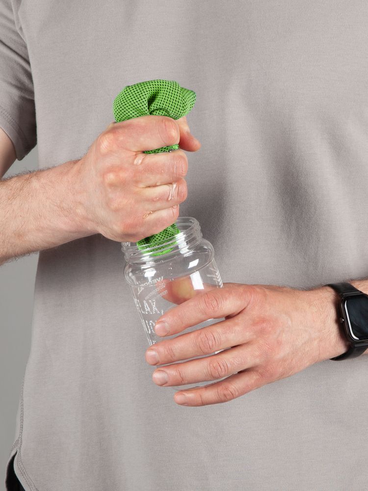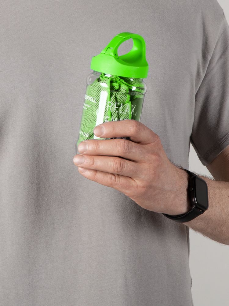 Намочи, встряхни, охладись!Море Уэддела у берегов Антарктиды — одно из самых холодных на Земле. Охлаждающее полотенце Stride не случайно носит это имя. Во время интенсивной тренировки, на пляже или просто в жаркий день — на улице или в душном офисе — Weddell спасет от перегрева и подарит ощущение чистоты и свежести. Поможет не допустить теплового удара или облегчить состояние при высокой температуре, защитит от обезвоживания.Полотенце поглощает тепло и регулирует температуру благодаря особенной структуре ткани из гидрофобных волокон с технологией трехмерного объемного плетения. Они ускоренно испаряют влагу, обеспечивая тем самым интенсивное снижение температуры.Полотенце Weddell — прохлада, которая всегда с тобой!Для получения охлаждающего эффекта намочите полотенце, отожмите излишки воды и встряхните. Положите полотенце на шею, лоб или запястье, убедившись, что ткань покрывает кожу. Влага, испаряясь из полотенца, оказывает охлаждающее воздействие на кожу, обеспечивая мгновенное облегчение.При хранении в бутылке полотенце сохранит охлаждающий эффект в течение нескольких часов. Благодаря крышке-карабину ее удобно прицепить на рюкзак или сумку.Бутылка не герметична. Не переворачивайте и не кладите бутылку на бок, если внутри вода.