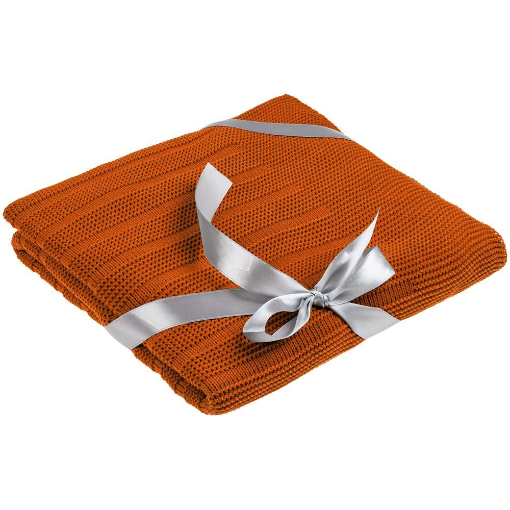 Плед рельефной вязки.Плед перевязан атласной лентой и поставляется в пакете с липким краем.
