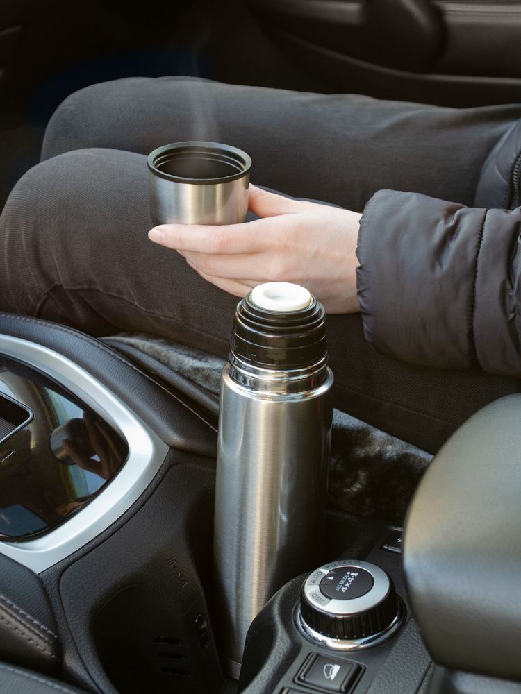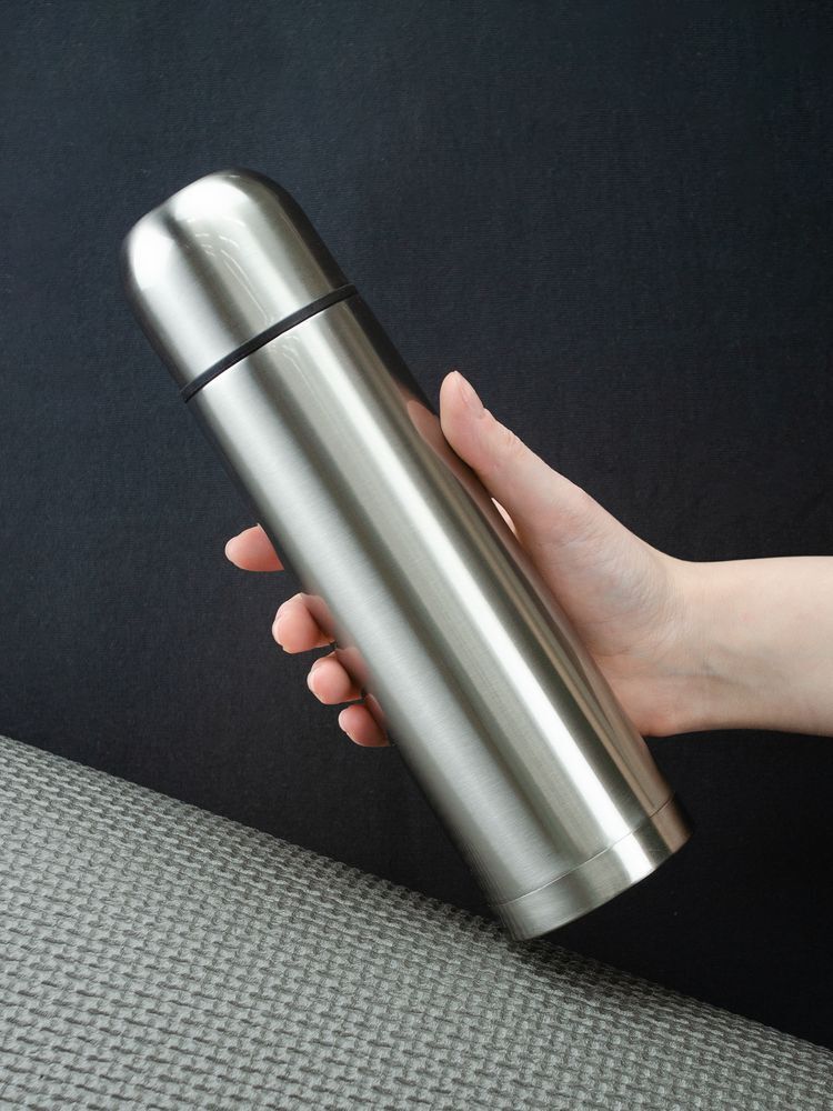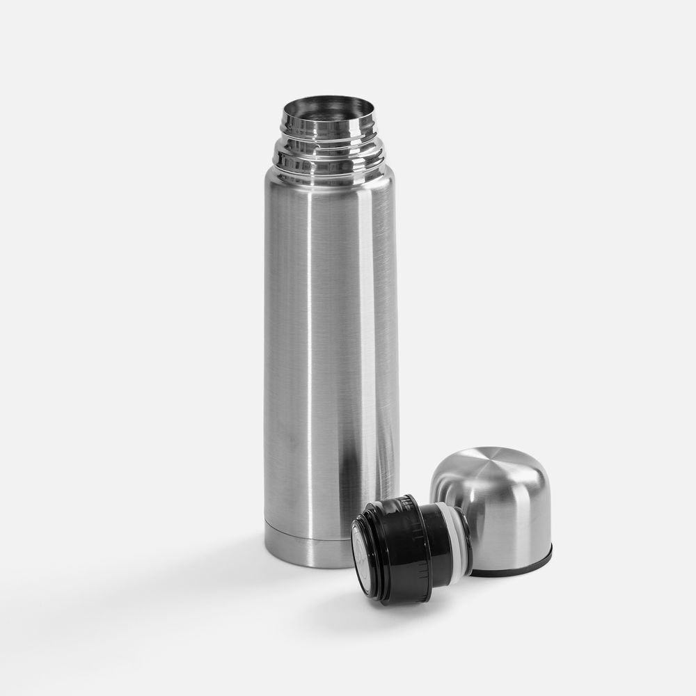 Емкость 500 мл.Двухслойная вакуумная конструкция из нержавеющей стали с завинчивающейся пробкой с клапаном.Изменение температуры напитка внутри закрытого стакана:При температуре окружающей среды +20 °Сначальная температура — 95 °Счерез 3 часов — 70 °Счерез 6 часов — 60 °Счерез 12 часов — 55 °Счерез 24 часа — 45 °СИз-за технологических особенностей процесса круговой гравировки нанесение встык не производится.Крышку можно мыть в посудомоечной машине, корпус рекомендуем мыть вручную.