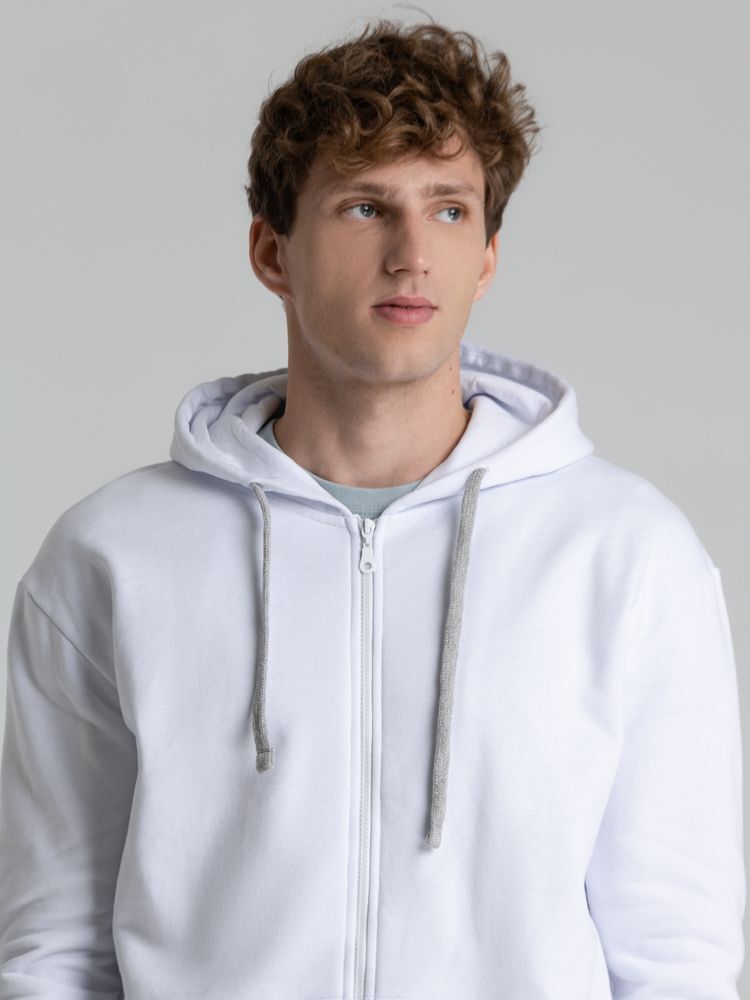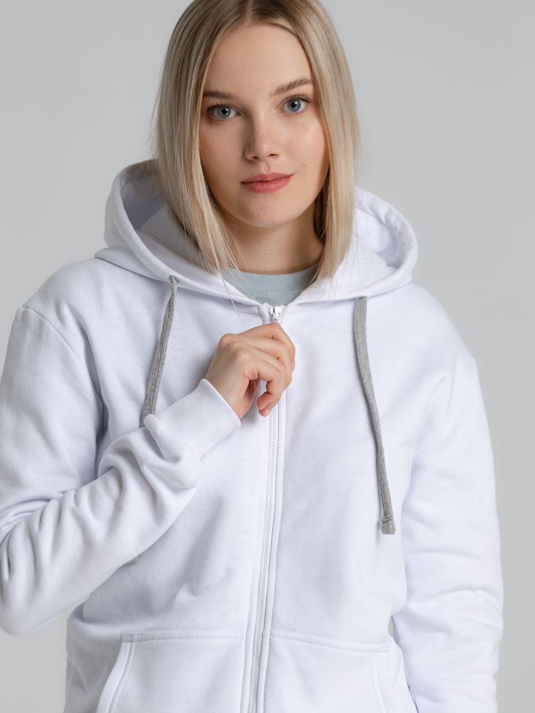 Базовая толстовка унисекс на молнии и с капюшоном.Капюшон на подкладкеМолния в тон изделияДва передних карманаМанжеты и низ изделия выполнены резинкой 2х2Утягивающий шнур серого цвета в капюшонеВнутренняя сторона с начесом Толстовки с начесом могут оставлять ворс на одежде нижнего слоя.Холодный белый оттенок.Таблица размеров, смXSSMLXLXXL3XL4XL5XLA505254565860636669B656769717375777981C616263646566676869Допускаются отклонения в 5% от указанных параметров по размеру и цвету