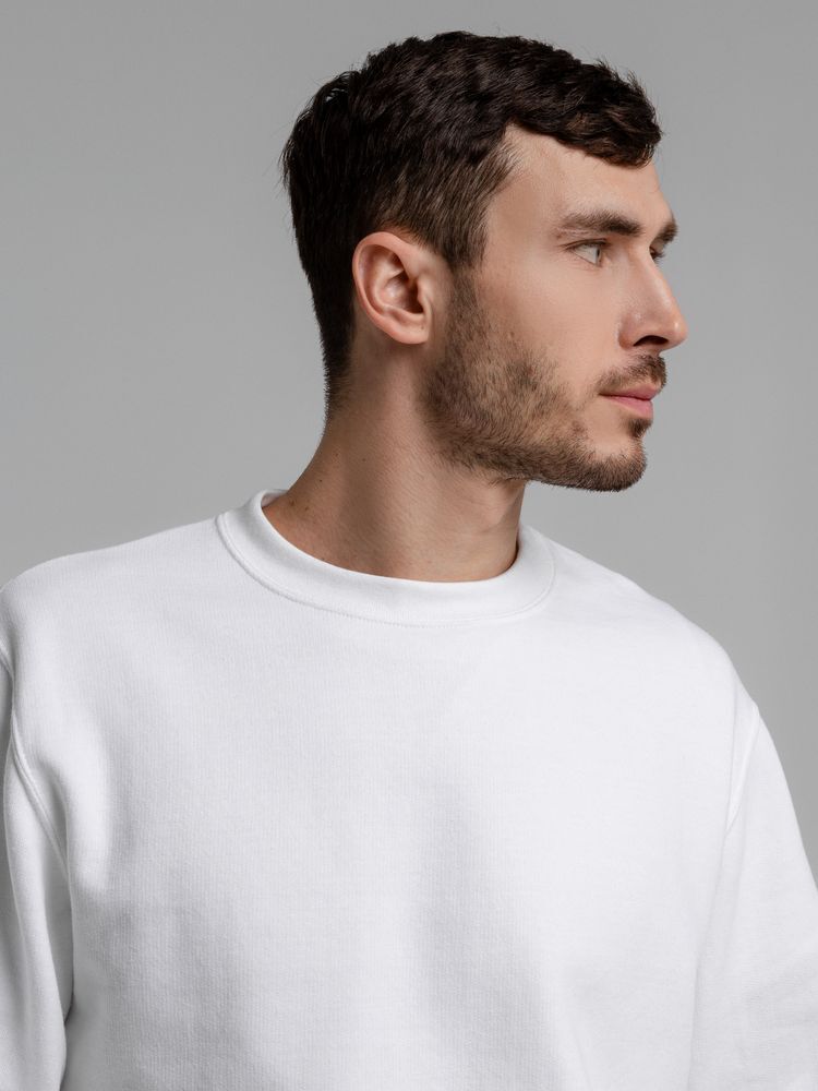 Свитшот без боковых швов.Укрепляющая тесьма по воротуМанжеты, ворот и низ изделия связаны резинкой с эластаномВтачной рукавВнутренняя сторона с начесомТолстовки с начесом могут оставлять ворс на одежде нижнего слоя.Таблица размеров, смSMLXLXXL3XLA515457606366B676869707172