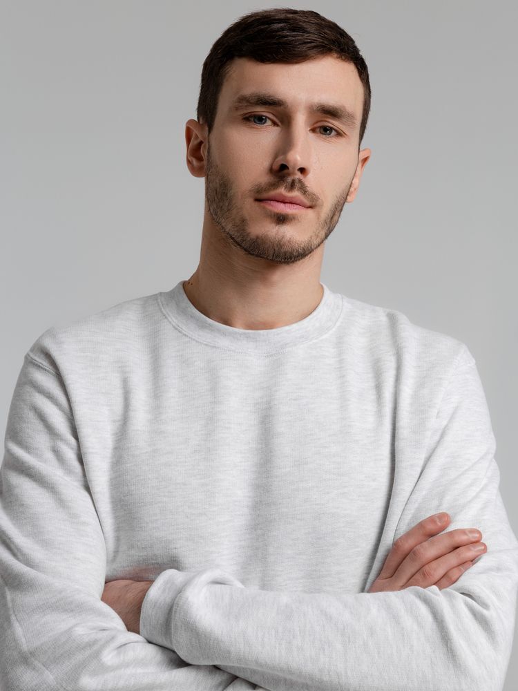 Свитшот без боковых швов.Укрепляющая тесьма по воротуМанжеты, ворот и низ изделия связаны резинкой с эластаномВтачной рукавВнутренняя сторона с начесомТолстовки с начесом могут оставлять ворс на одежде нижнего слоя.Таблица размеров, смSMLXLXXL3XLA515457606366B676869707172