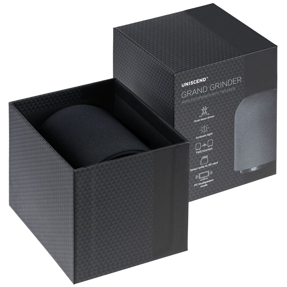 Разработанная компанией «Проект 111» универсальная bluetooth-колонка Grand Grinder не только мощнее и басовитей своего предшественника, но и обладает рядом дополнительных удобных и востребованных функций.TWS-соединение — образование стереопары с точно такой же второй колонкойЗапись музыки на карту памяти (функция кардридера)Круговая подсветка корпусаРабота по USB-интерфейсу в качестве компьютерной колонкиВерсия Bluetooth: 5.0Диапазон частот: 80 Гц – 20 000 Гц Выходная мощность, номинальная: 5 ВтВозможность образования стереопары по Bluetooth (True Wireless Stereo)Слот для карты microSD с возможностью прямой записи файлов через прилагаемый кабель Проигрывает mp3-файлы с битрейтом от 128 до 320 кбит/сМаксимальная емкость карты microSD: 32 ГбБелая круговая подсветка основания колонкиРежим работы в качестве компьютерной акустики через Type-C (имя устройства USBAudio2.0)Емкость встроенного аккумулятора: 1000 мАчВремя воспроизведения: не менее 6 часовВремя заряда: не более 1,5 часовМикрофон для громкой связиРекомендуемые параметры зарядного устройства: 5 В, 1-2 АКабель с разъемом USB Type-C в комплекте (заряд и передача данных)Исключительное право: ООО «Проект 111»