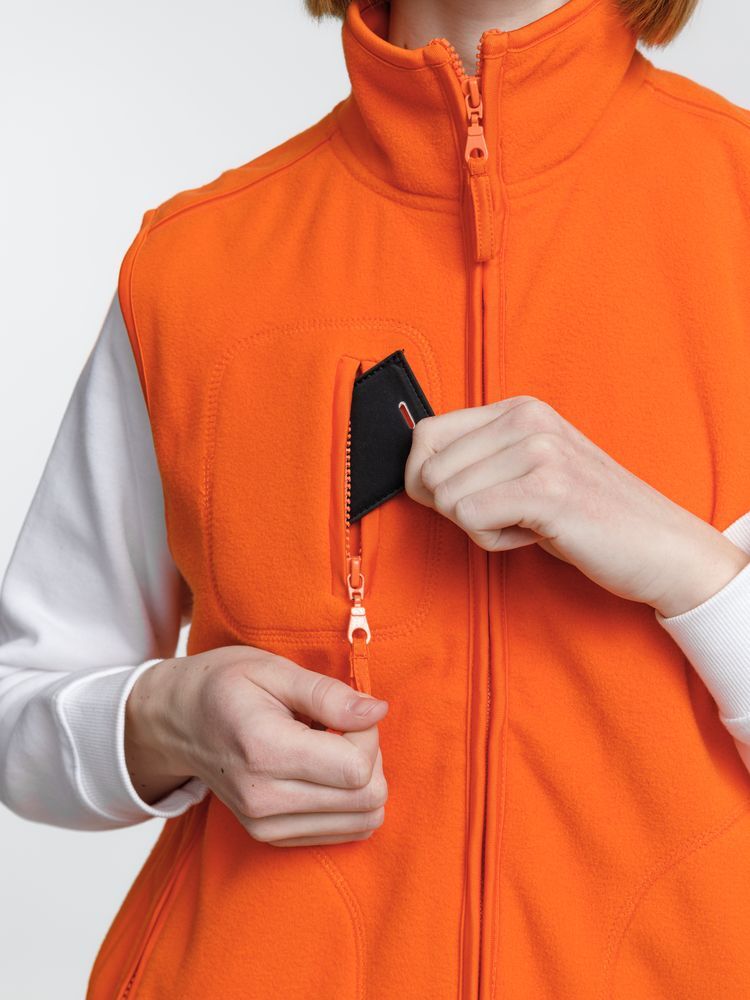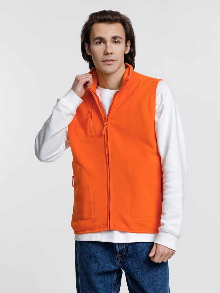 Флисовый жилет унисекс на молнии выполнен из материала повышенной плотности. Благодаря лазерному крою short cut жилет имеет отличную посадку, а дополнительная обработка против катышков позволяет материалу долго оставаться в первоначальном виде. Воротник стойкаУкрепляющая тесьма по воротуКарманы на молнии: два боковых, один нагрудныйЭластичная бейка по вороту, на проймах и по низу изделияТаблица размеров, смXSSMLXLXXL3XL4XL5XLA505357606366697275B646668707274767880Допускаются отклонения в 5% от указанных параметров по размеру и цвету.