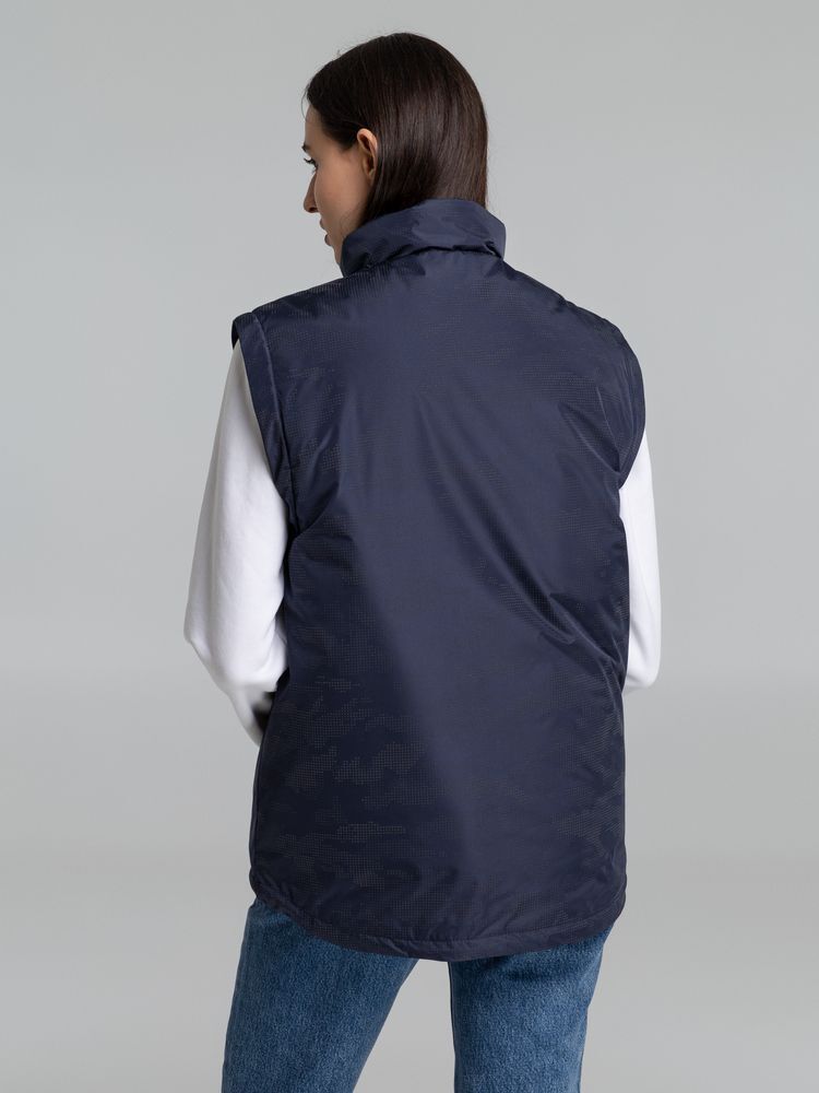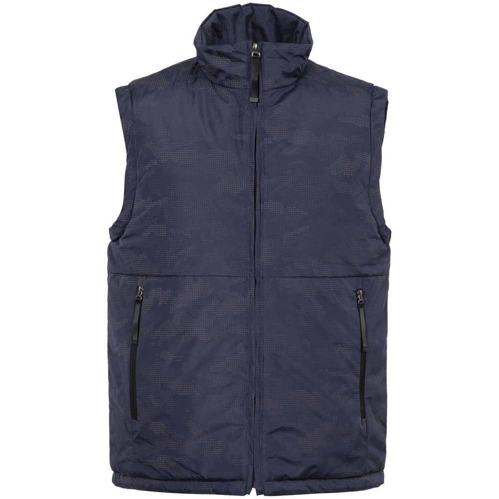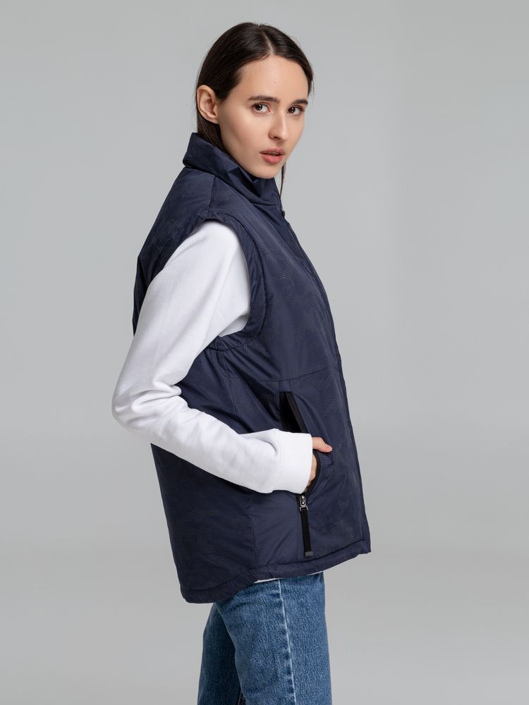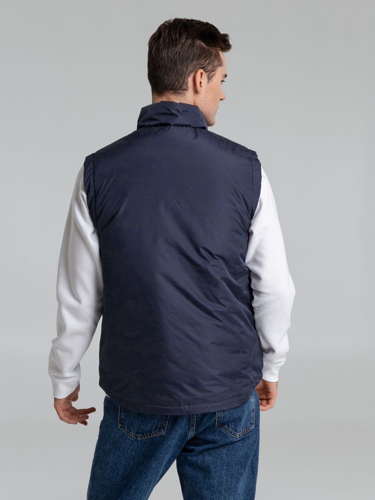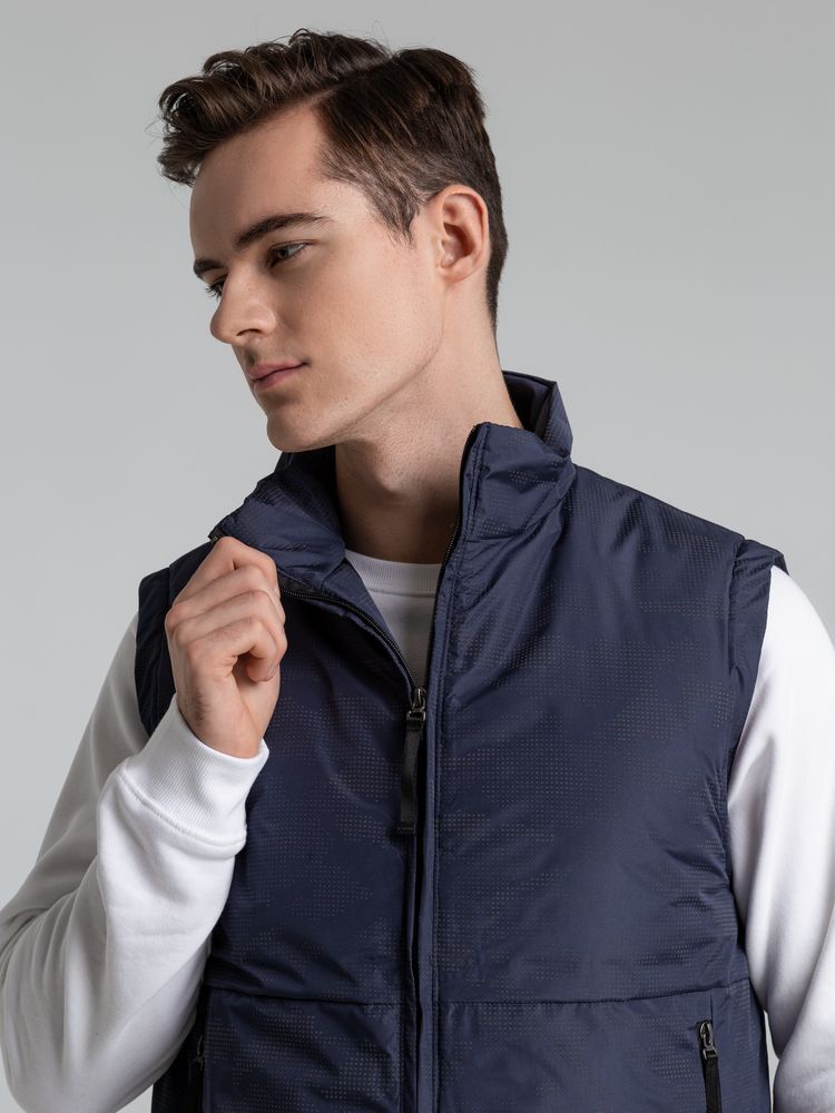 Жилет с воротником-стойкой и светоотражающим рисунком.Воротник-стойкаСкругленный низ2 наружных кармана на молнииВнутренний декоративный карман на молнииУтягивающий шнур по низуДля удобства нанесения логотипа можно частично отстегнуть подкладкуТаблица размеров, смXS44S46M48L50XL52XXL543XL56A52,554,556,558,560,562,564,5B67,76870,370,672,973,275,5Допускаются отклонения в 5% от указанных параметров по размеру и цвету.